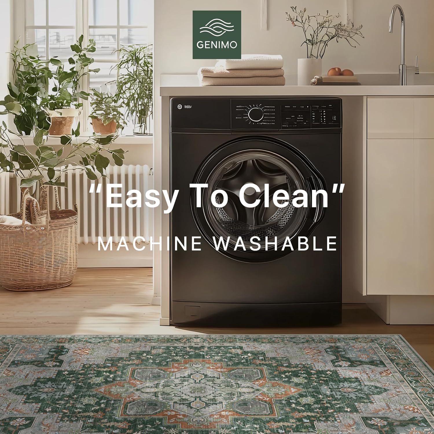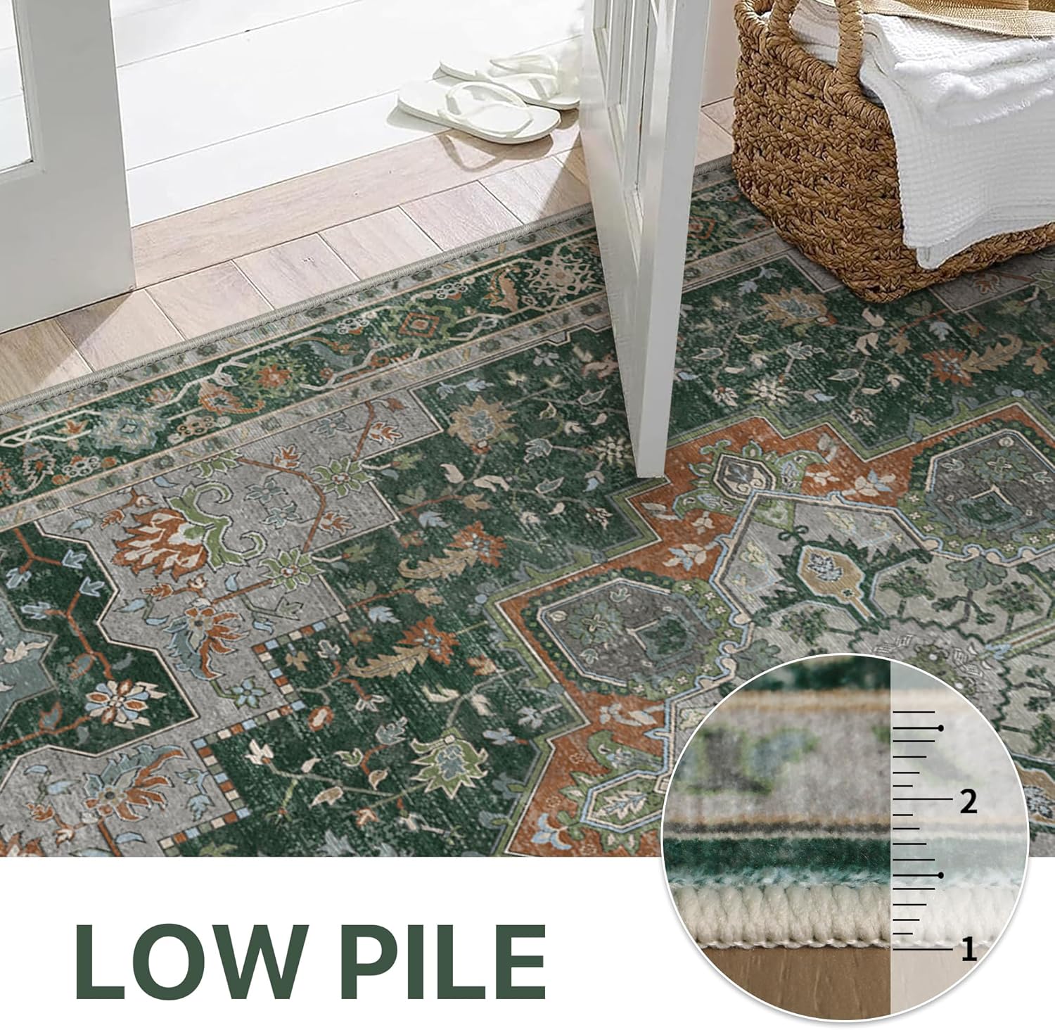 GENIMO 2x10 Runner Rugs for Hallway, Machine Washable Non Slip Vintage Rugs, Low Pile Lightweight Soft Print Rug for enrtyway, Corridor, Home Office, Kitchen,Pine Green