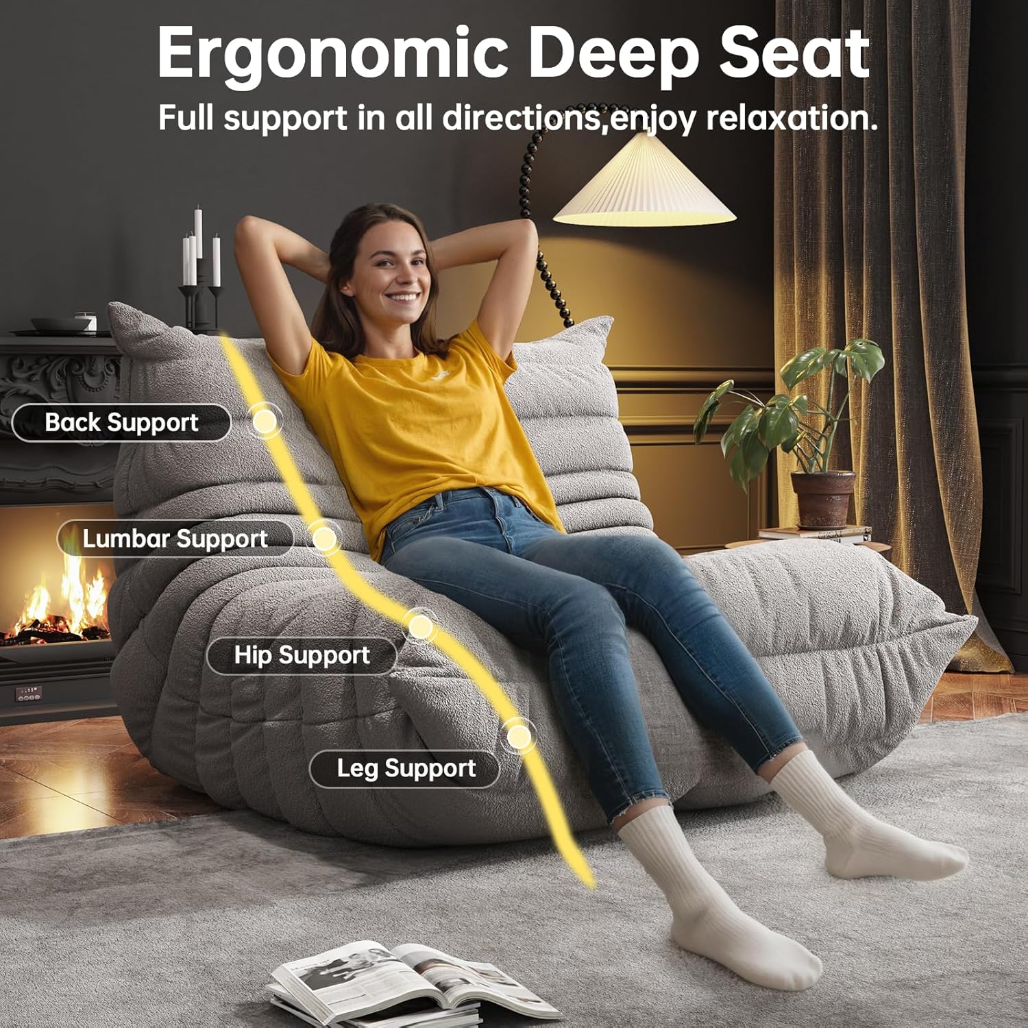 - Premium Soft Teddy Fabric: This bean bag chairs for adults is upholstered in a luxurious, skin-friendly teddy fabric that provides a soft, cozy relaxation. Perfect for cozy reading chair, taking a nap or reading, or simply unwinding after a busy day, it offers a premium touch of comfort for you