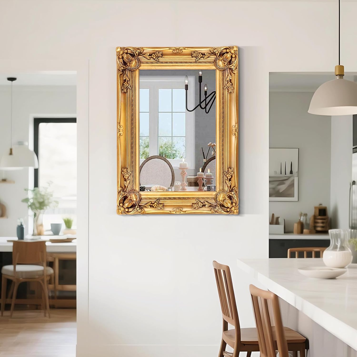 Antique Wall Mirror, 29.1'' x 21.2''Vintage Baroque Mirror with Ornate Frame, Gold Mirror Decorative for Entryway, Living Room, Bathroom