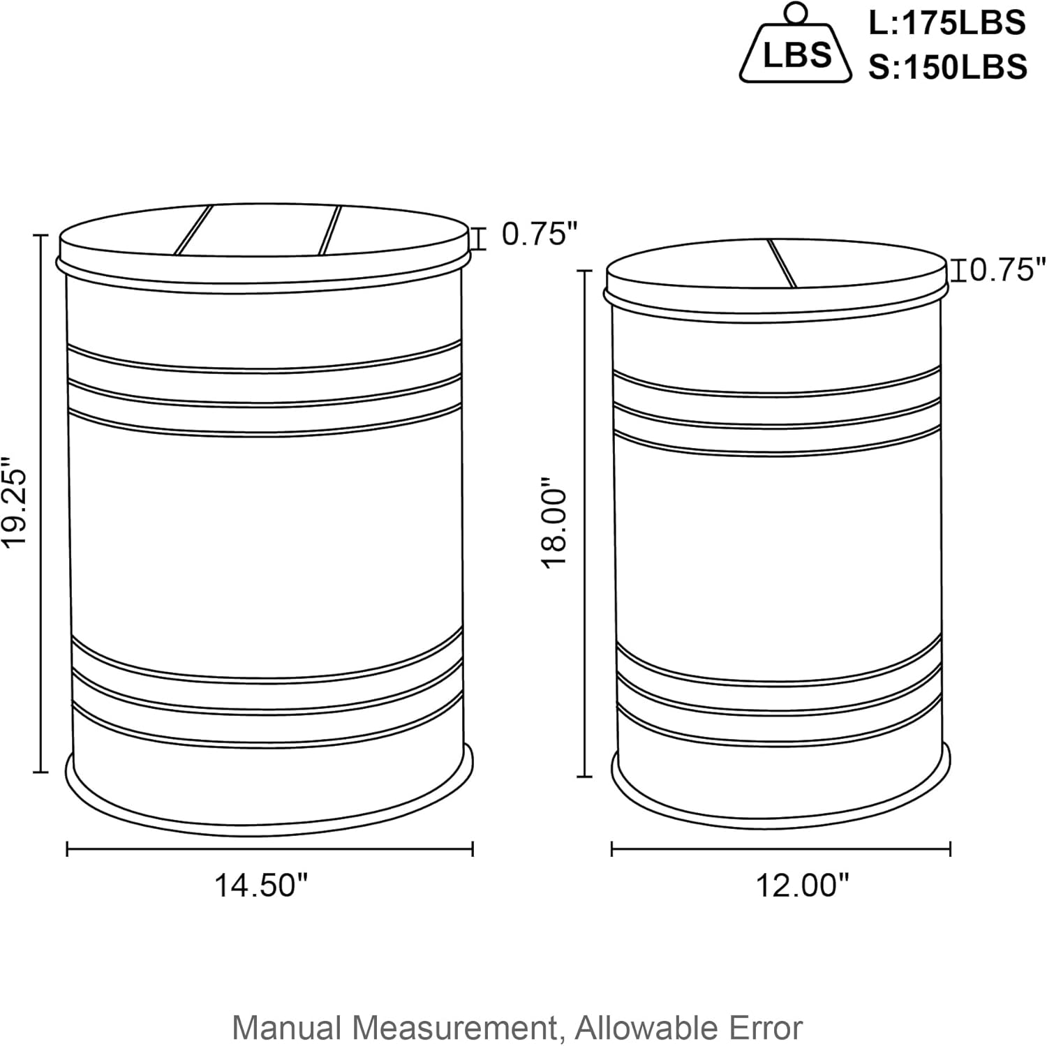 - 【Industrial Chic Design】Cylinder-shaped barrel end table with curling edges adds rustic elegance to modern spaces. Features a nesting stools side table design for compact storage, perfect for small farmhouse side tables in apartments or offices. The removable lid doubles as a round farmhouse end table, ideal for western coffee table setups or farmhouse ottoman styling.