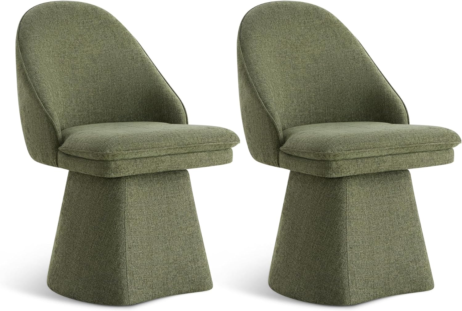 Swivel Dining Chairs Modern Desk Chair Upholstered Linen Fabric Side Chair for Kitchen Dining Room Bedroom,Moss Green,2 Box