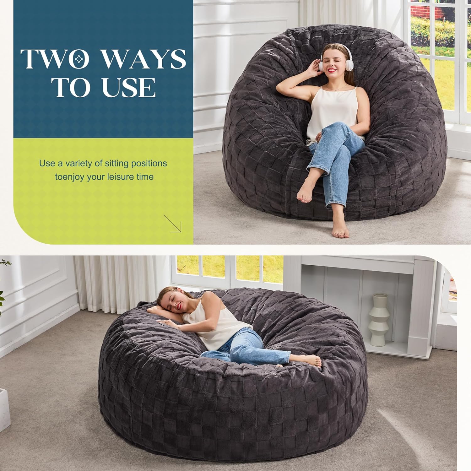 Hobestluk Bean Bag Chairs Beanbag Chair with Filler Adult Bean Bags with Fluffy Cover, Giant Bean Bag Chairs for Adults for Living Room, Bedroom (Dark Grey, 6FT - 70" x 70" x 15")