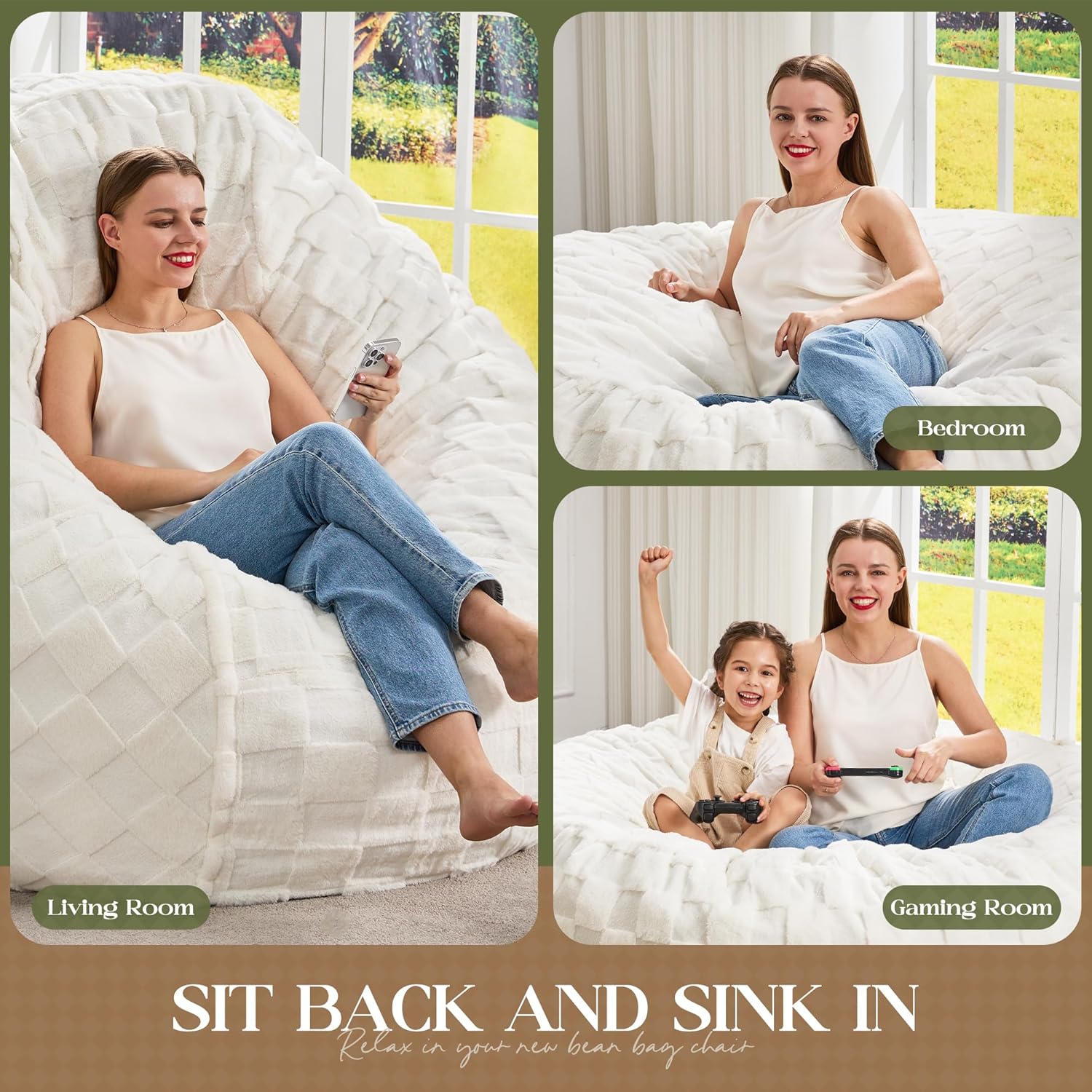 - 2-in-1 Usage: This large bean bag chairs offers two ways to use. Flip it over for added support, adapting to different scenarios for enhanced comfort and functionality.