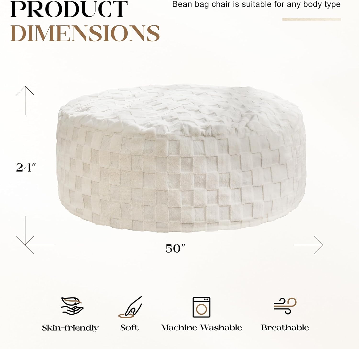 Hobestluk Bean Bag Chairs Beanbag Chair with Filler Adult Bean Bags with Fluffy Cover, Giant Bean Bag Chairs for Adults for Living Room, Bedroom (White, 5FT - 50” x 50” x 24”)