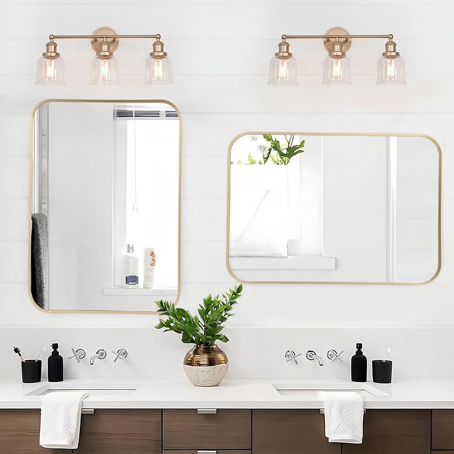 Gold Mirror, 22x30 Inch Gold Rectangle Mirror, Aluminum Alloy Framed Vanity Mirror, Rounded Rectangle Bathroom Mirror for Over Sink, Anti-Rust Wall Mirror (Horizontally or Vertically)