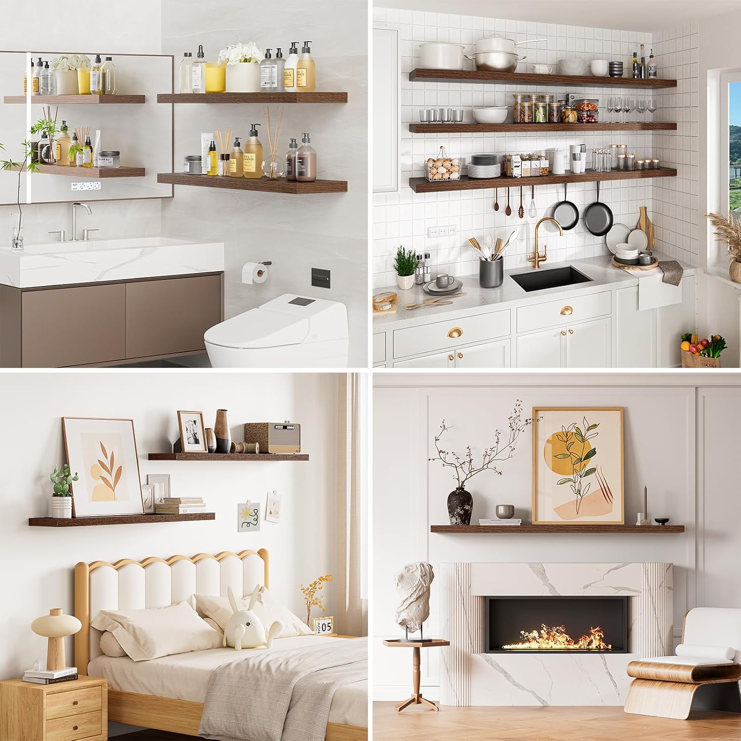 - 【Modern Rustic Look】Our floating shelves for wall are made from durable engineered wood,which blends well with modern and rustic farmhouse wall decor alike.The wall shelf is available in colors & sizes,perfect for storing books,plants,collectibles,etc..
