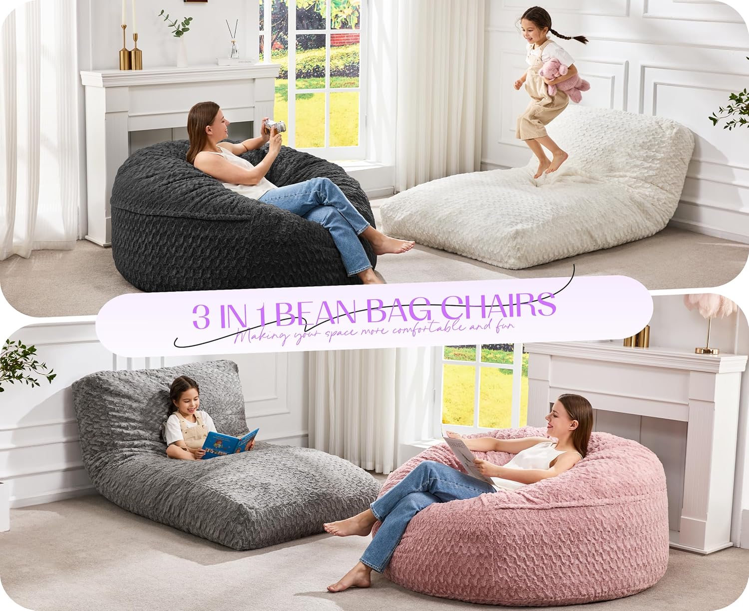 - Multi-Functional 3-in-1 Design: This bean bag chair offers three usage modes, serving as both a comfortable bean bag chair and a spacious lounger. This convertible design allows for flexible adjustments to different needs and scenarios, providing an excellent comfort experience whether you're relaxing in the living room, resting in the bedroom, or enjoying the sun on the balcony.