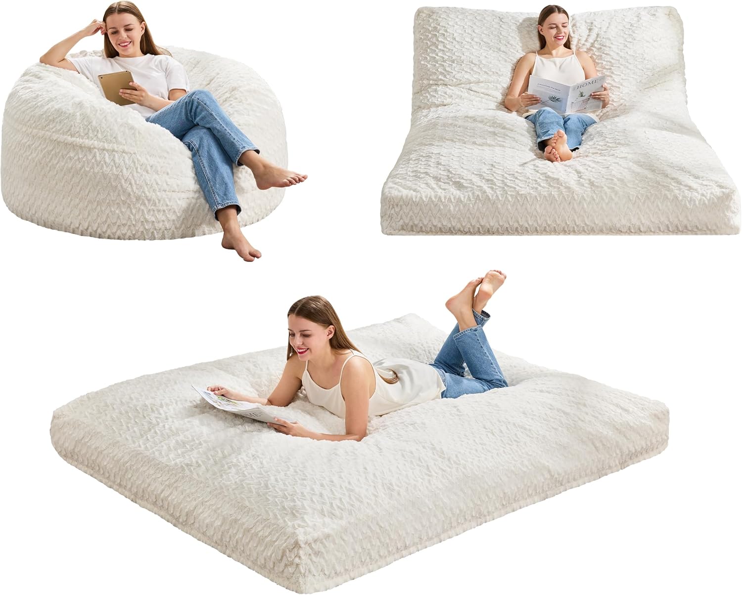 - Multi-Functional 3-in-1 Design: This bean bag chair offers three usage modes, serving as both a comfortable bean bag chair and a spacious lounger. This convertible design allows for flexible adjustments to different needs and scenarios, providing an excellent comfort experience whether you're relaxing in the living room, resting in the bedroom, or enjoying the sun on the balcony.
