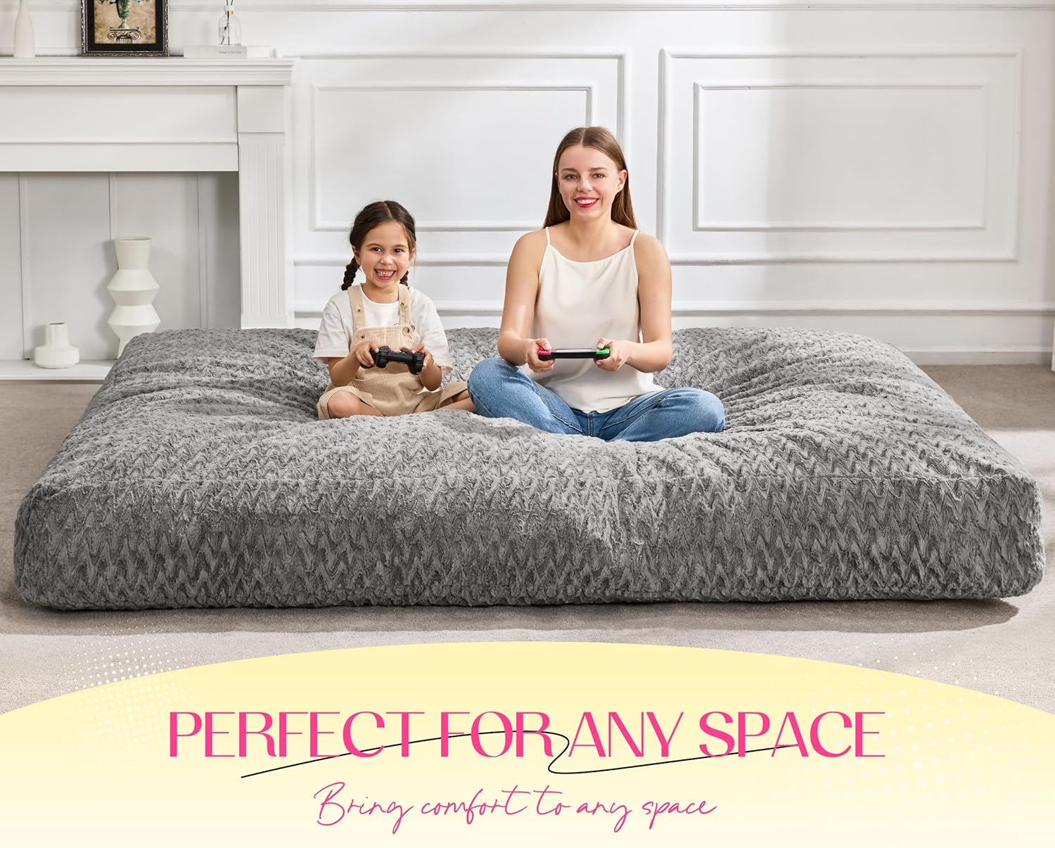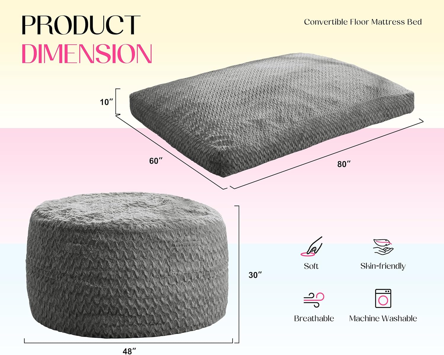 Hobestluk Bean Bag Chair Convertible Beanbag Chairs for Adults, 3 in 1 Bean Bags with Plush Chevron Cover, Adult Bean Bag Chair for Living Room, Bedroom (Grey, Queen)