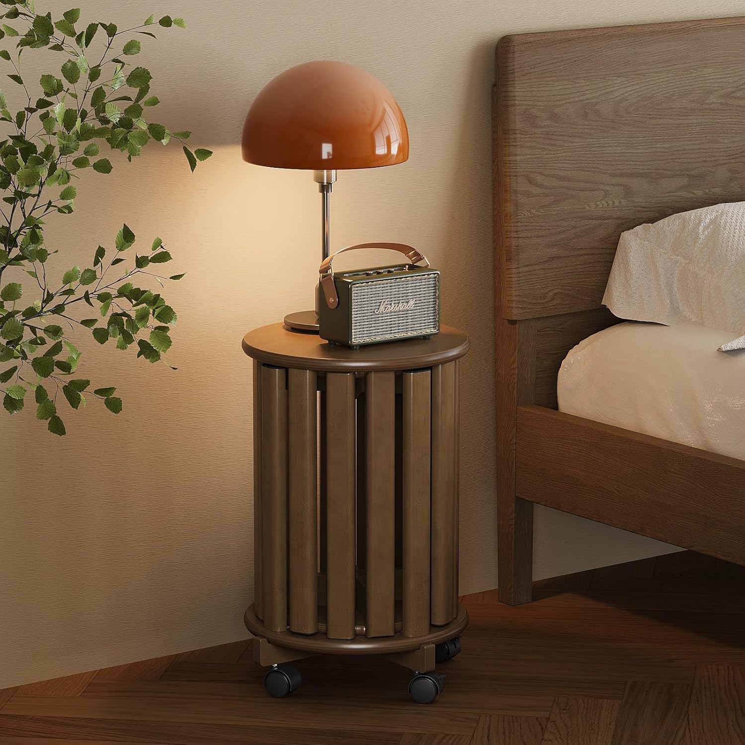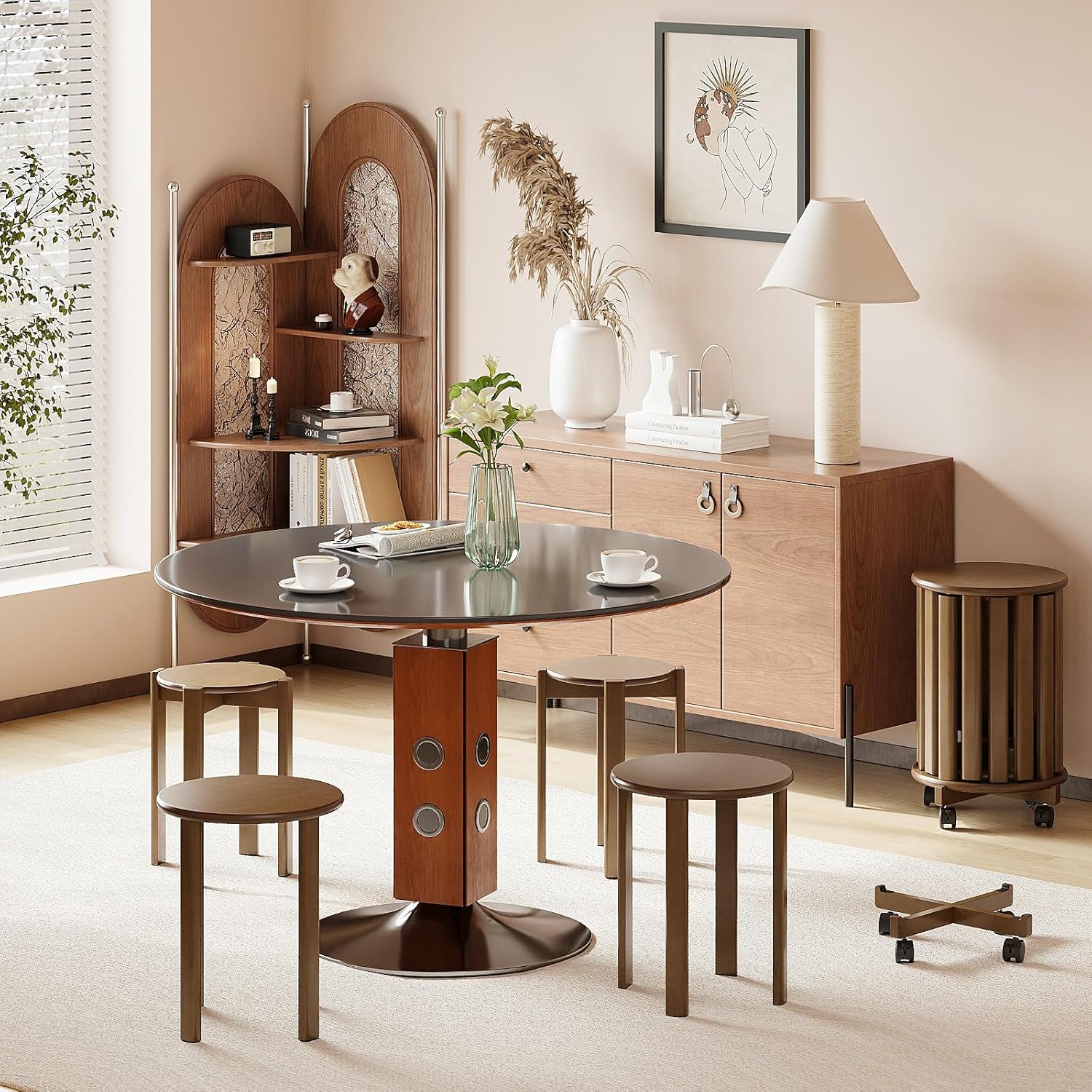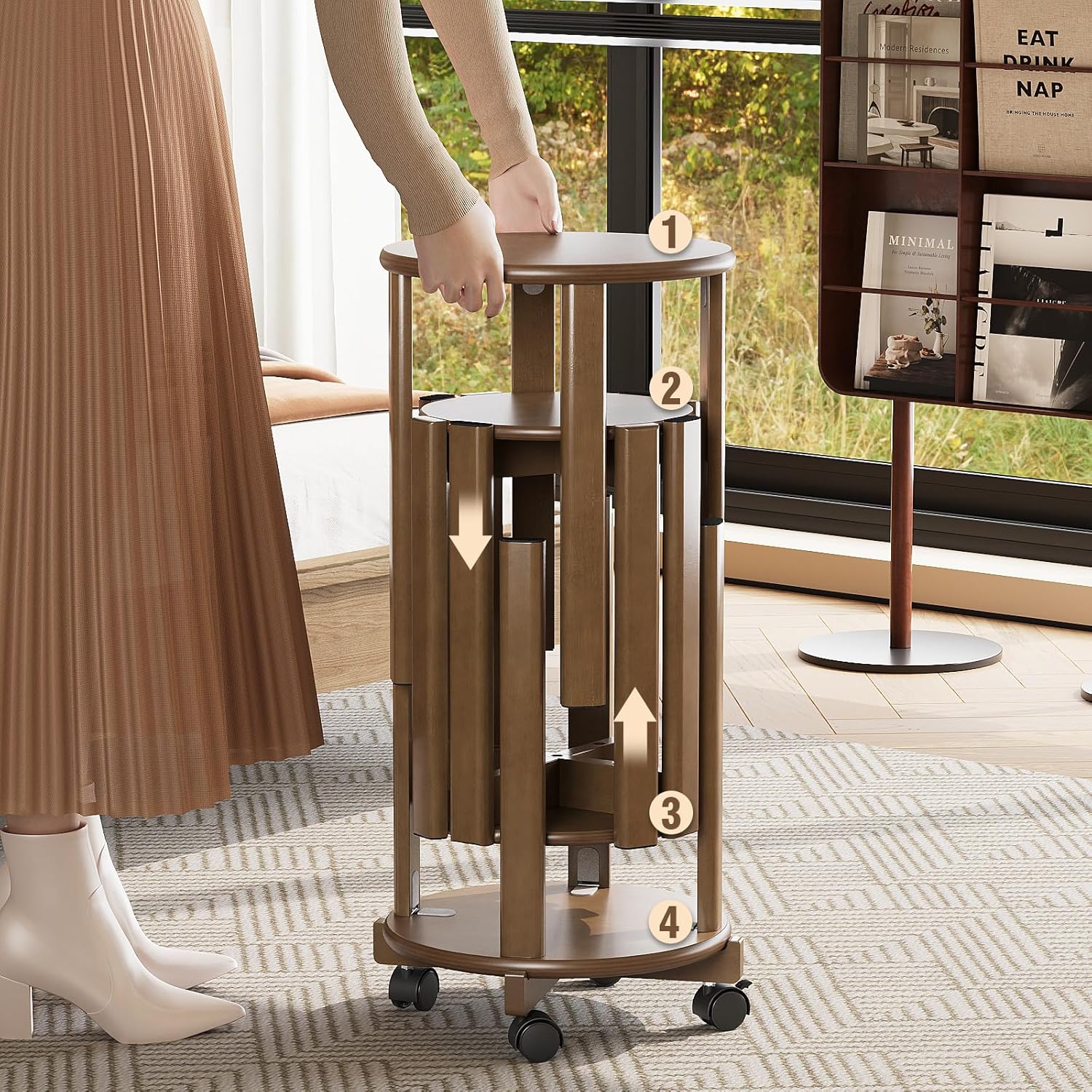 Stackable Stools Set of 4, 4‑in‑1 Bamboo Nesting Stools & End Tables with Wheels, 18″ Round Portable Barstools No‑Assembly Stool for Kitchen Living Room Bar Dorm, Walnut