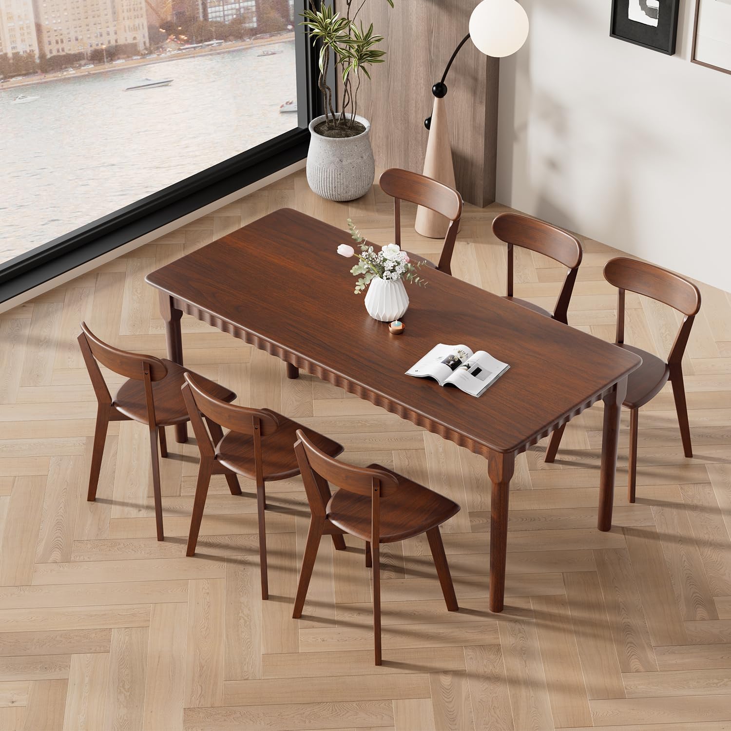 - Elegant and Practical: The mid century modern dining table's surround uses a vertical wave pattern to create a romantic atmosphere. 3.5 inches wider provides stable support. Its rustic finish adds a touch of vintage charm to your dining room or kitchen decor.