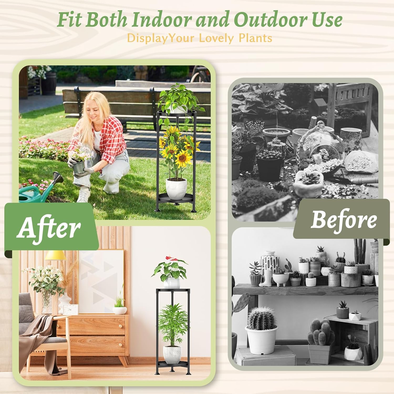 - 【Sturdy & Reliable】Looking for a plant stand that won’t wobble? Our flower stand is made of high-quality sturdy metal and a stable triangular frame. It stays put even when filled with heavy pots, so you can place it anywhere in your home with confidence. No more worrying about stability!
