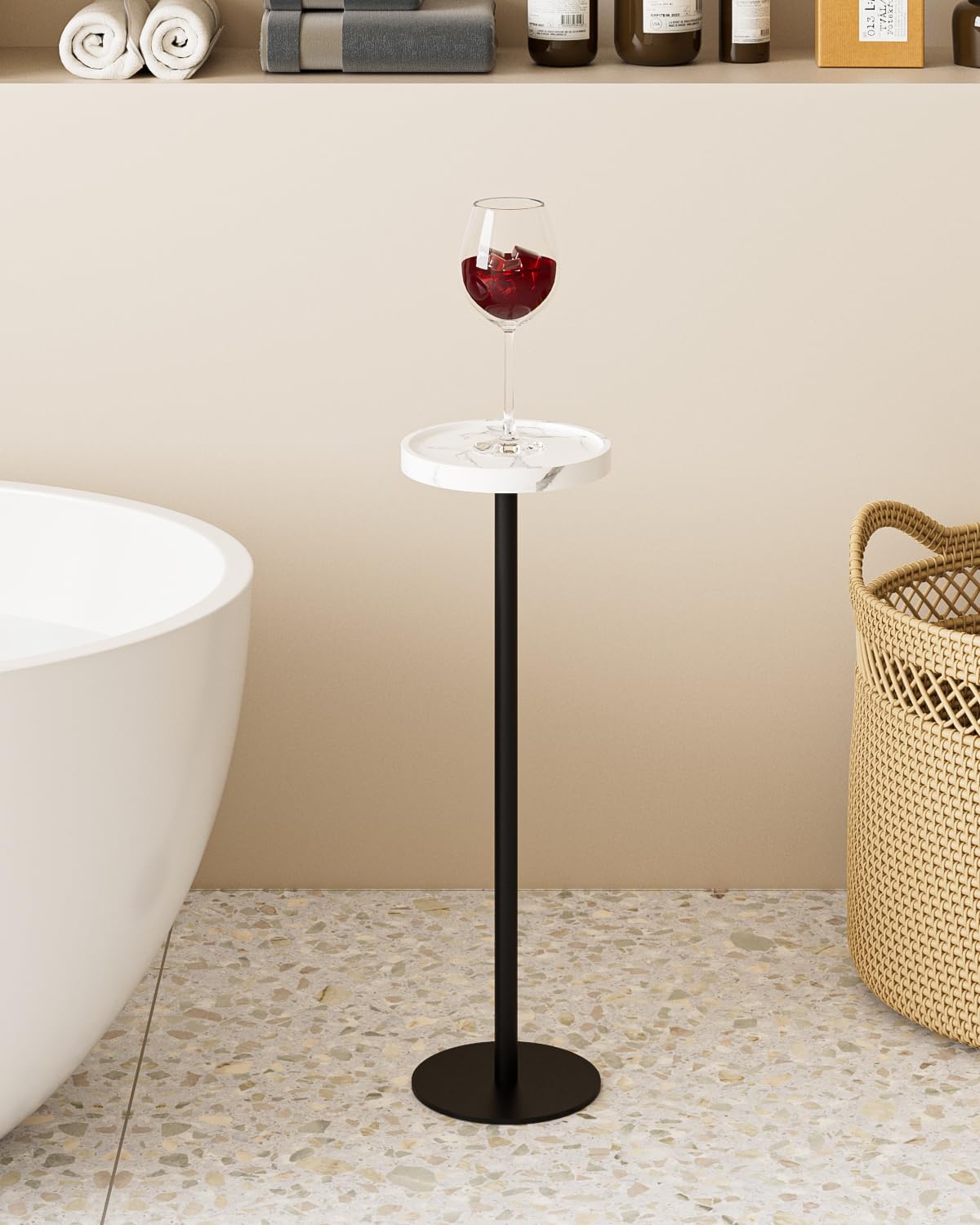 - Small table for small spaces: The small round side table, sized only 7.87"Dia. x 24.8”H, takes up minimal space, perfect for various small spaces such as dorms, apartments, etc. The small table is not only an accent to home decor but also a cozy spot for cocktails or coffee after a long day. This small table is like your intimate companion, accompanying you to enjoy every moment of relaxation