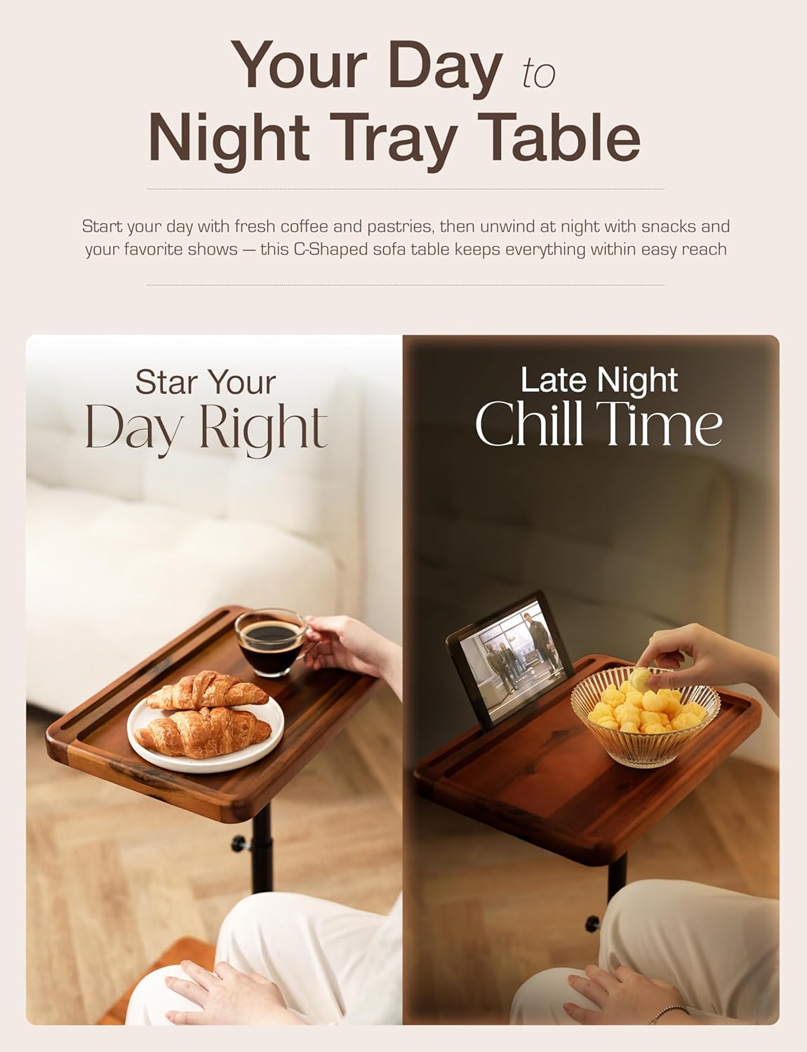 - Premium Acacia Wood: Crafted from solid acacia wood with a rich, natural finish, this C - shaped end table combines timeless style with long-lasting durability. The wooden couch tray adds warmth and charm to any modern or rustic living room