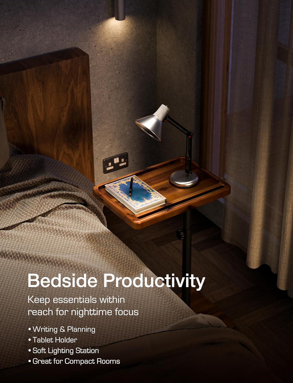 - 360° Swivel Tabletop with Spill-Proof Edges: Enjoy the flexibility of a swivel side table with a full 360° rotating tray—designed with a raised lip to keep drinks, snacks, or devices secure. Whether you're eating, working, or relaxing, this small drink table keeps everything at your fingertips without spills