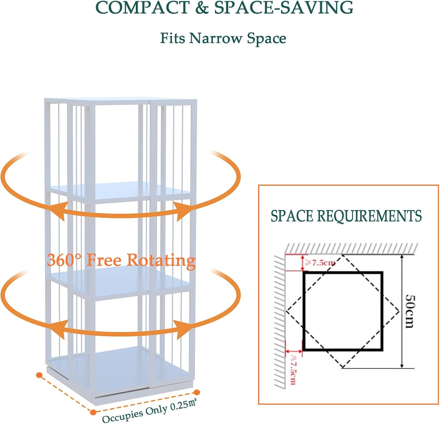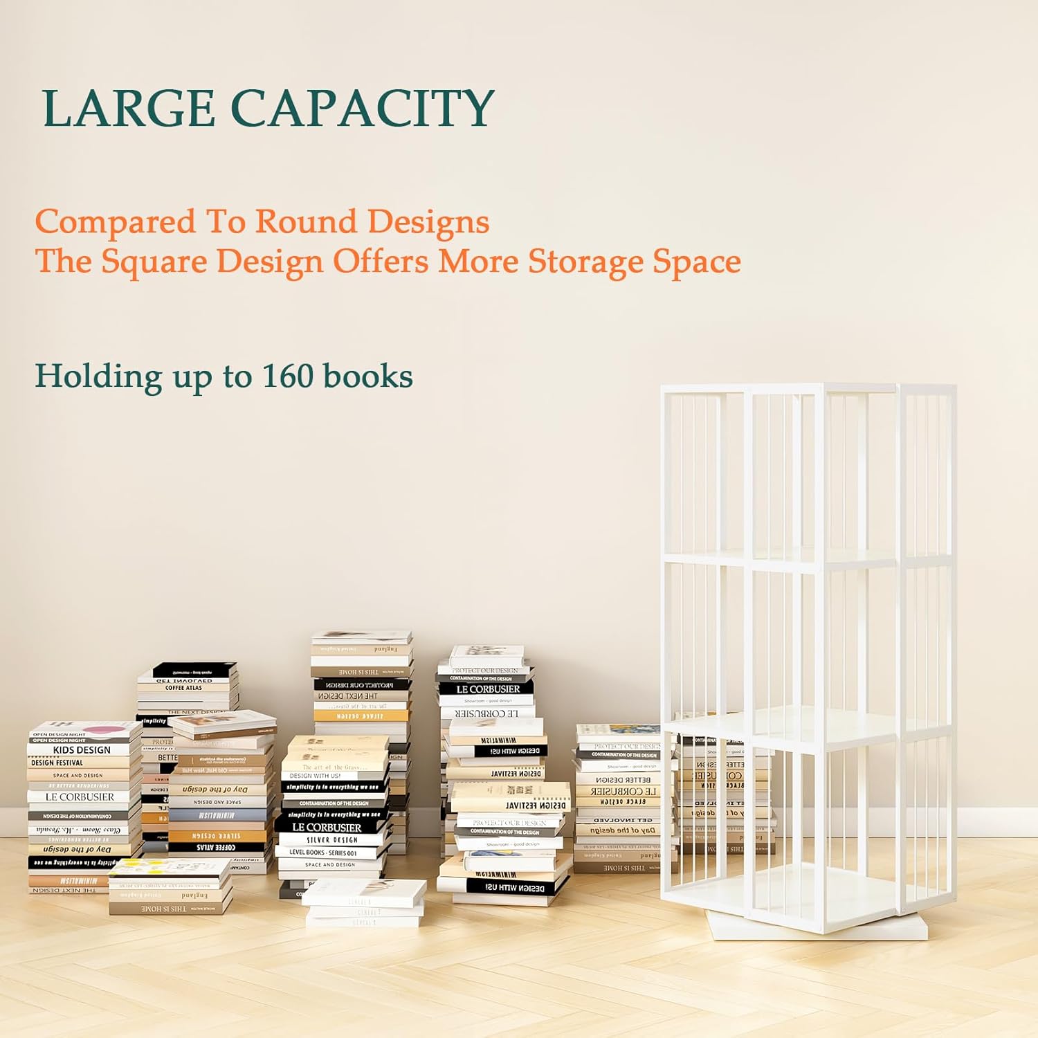 - COMPACT & SPACIOUS - Unlike common round designs, this square swivel bookcase maximizes space efficiency with greater capacity—holding at least 40 books per tier while occupying the same footprint. Its space-saving shape fits perfectly in corners and narrow spaces like apartments or dorms, making it ideal for compact living areas;