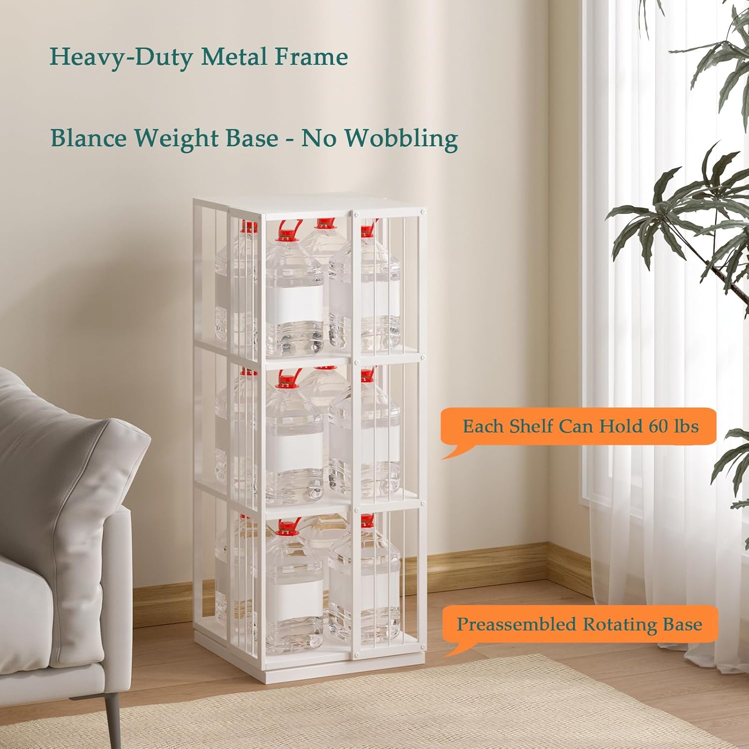 - STURDY CONSTRUCTION - This revolving shelf features four heavy-duty metal frames and blance weight base for enhanced stability—no wobbling or tipping. Each shelf supports up to 60 lbs (27 kg), ensuring reliable storage for heavy books or collections;