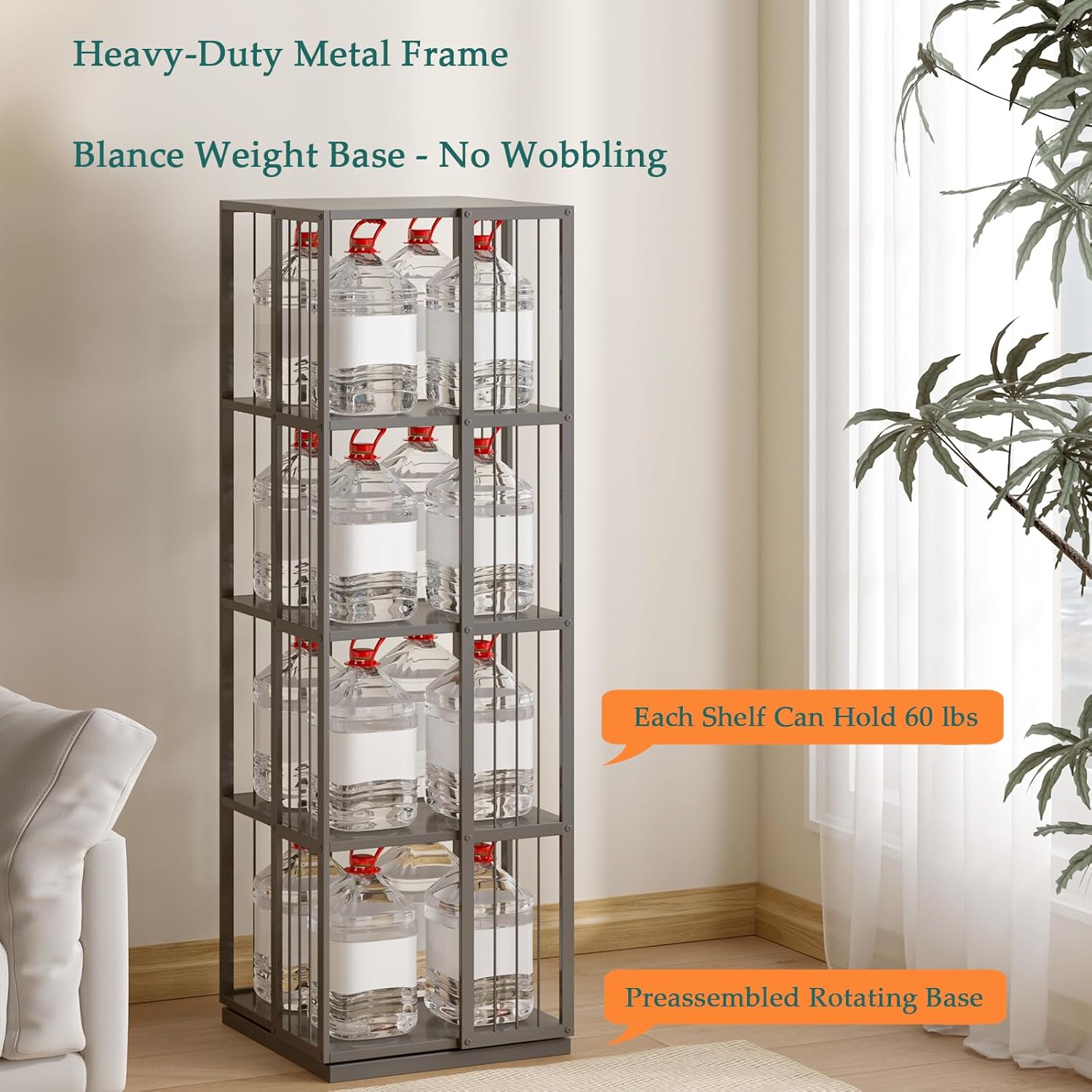 - STURDY CONSTRUCTION - This revolving shelf features four heavy-duty metal frames and blance weight base for enhanced stability—no wobbling or tipping. Each shelf supports up to 60 lbs (27 kg), ensuring reliable storage for heavy books or collections;