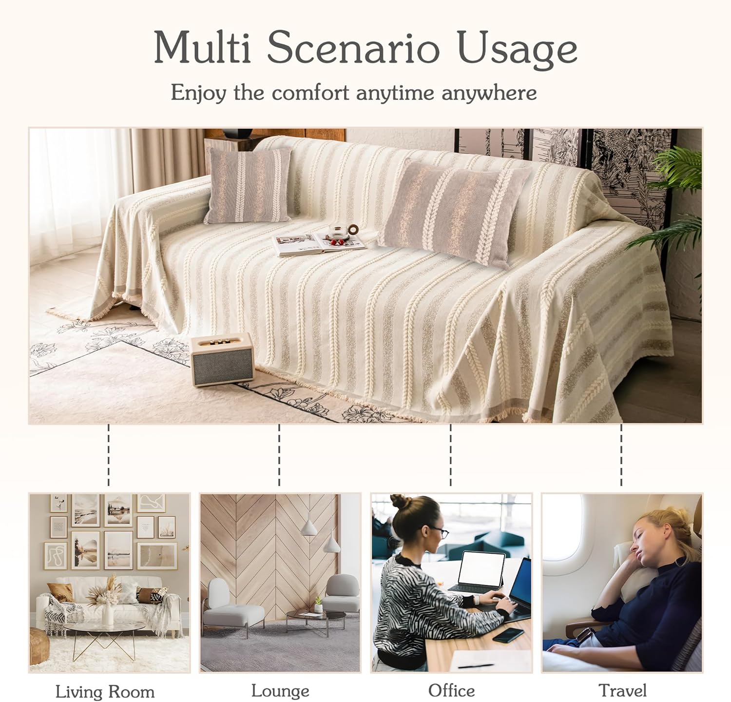 - Multi-Purpose Couch Cover: Ours couch covers suitable for different scenes. Suitable for all shapes of sofas, recliners, double sofas, triple sofas, L shaped couch. Sofa covers can both protect the sofa and serve as a blanket, as well as for decorating beds and replacing carpets.Moreover, the sofa cover can be used all year round. It can effectively protect the sofa surface wear and tear, as well as children and pets scratching, also can prevent dust, stains and pet hair left on the sofa
