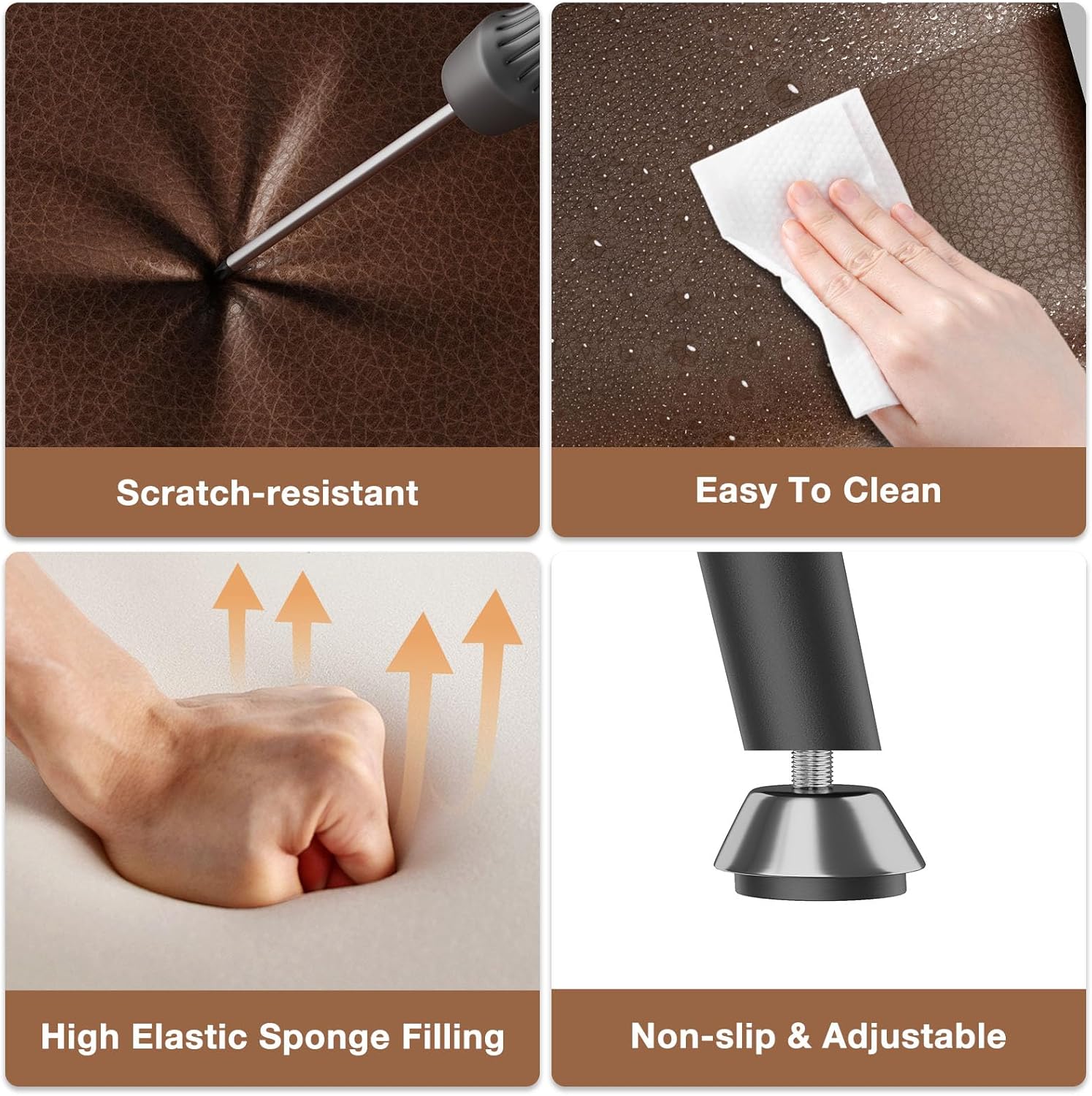 - 【Sturdy Construction】 This kitchen bar stool features 25mm-diameter metal legs with 1.2mm-thick walls, supporting up to 400 lbs. The adjustable leveling feet ensure superior stability, delivering worry-free, long-lasting performance.