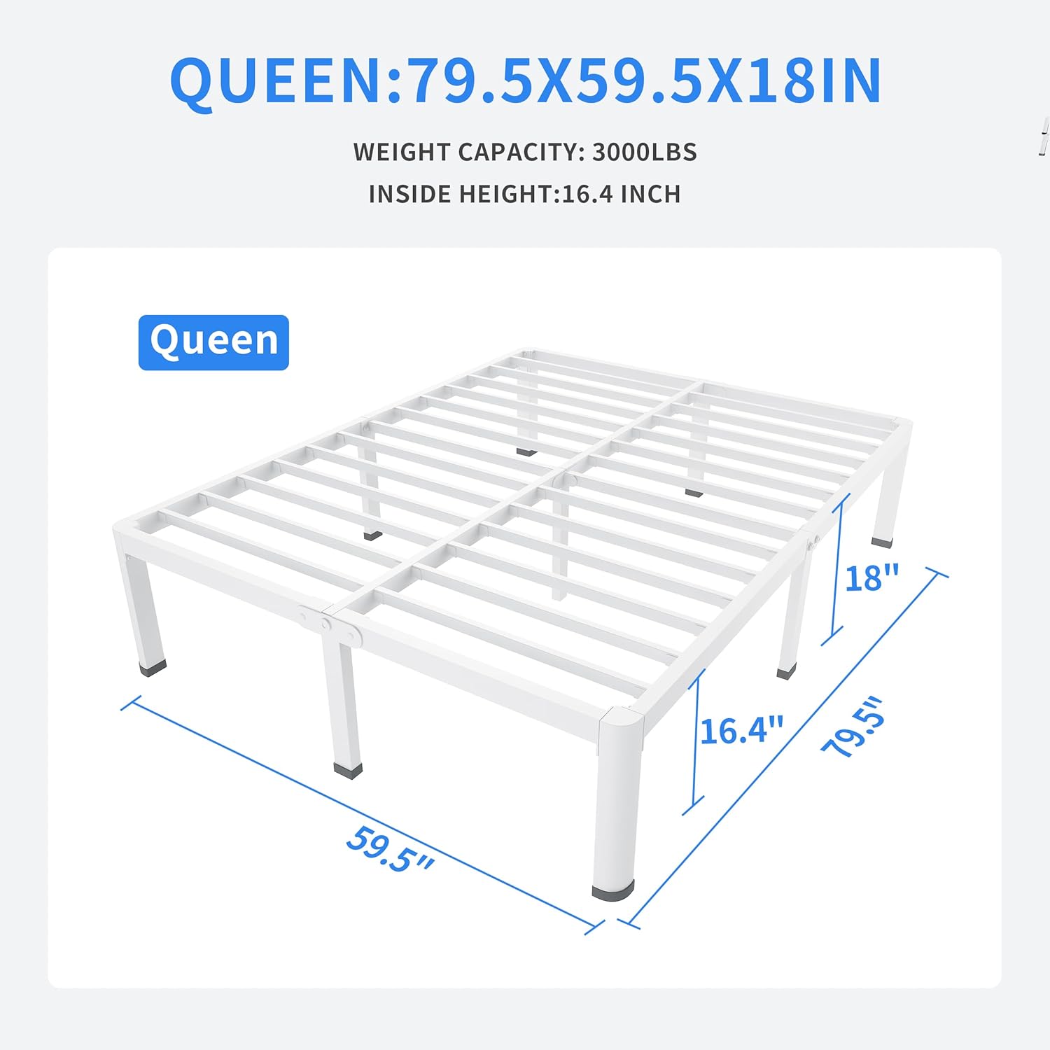 - UNDER BED STORAGE - This tall queen bed frame provides 16.4 inches of under-bed storage, easy to organize and clean, making the room cleaner and tidier. This queen size metal bed frame is suitable for bedrooms, guest rooms, dormitories, apartments, etc.