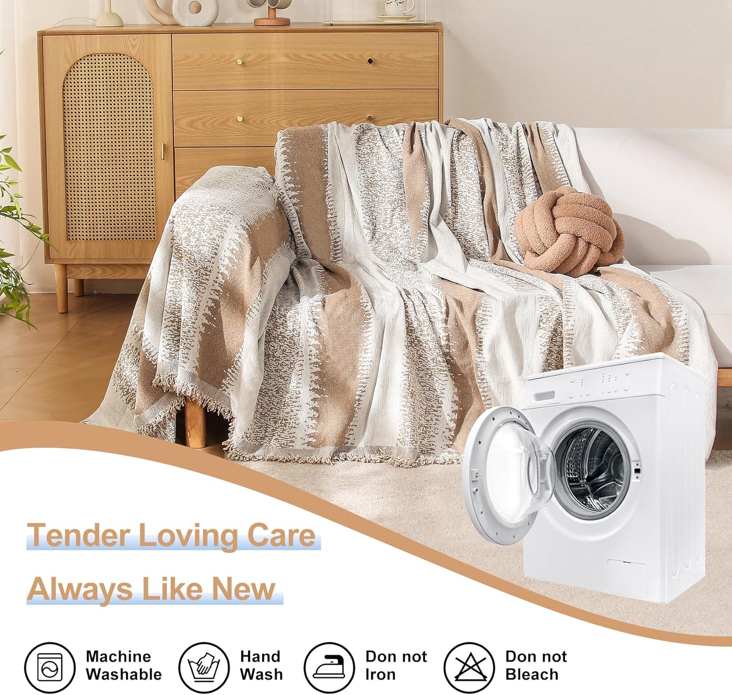 - Easily to Use and Care: Our couch throw cover shields your furniture from spills and accidents, ensuring easy clean-up. Simply toss it in the washing machine with cold water (around 30°C) and mild detergent for hassle-free maintenance. Avoid bleach and ironing, careful care can accompany you for a longer time.