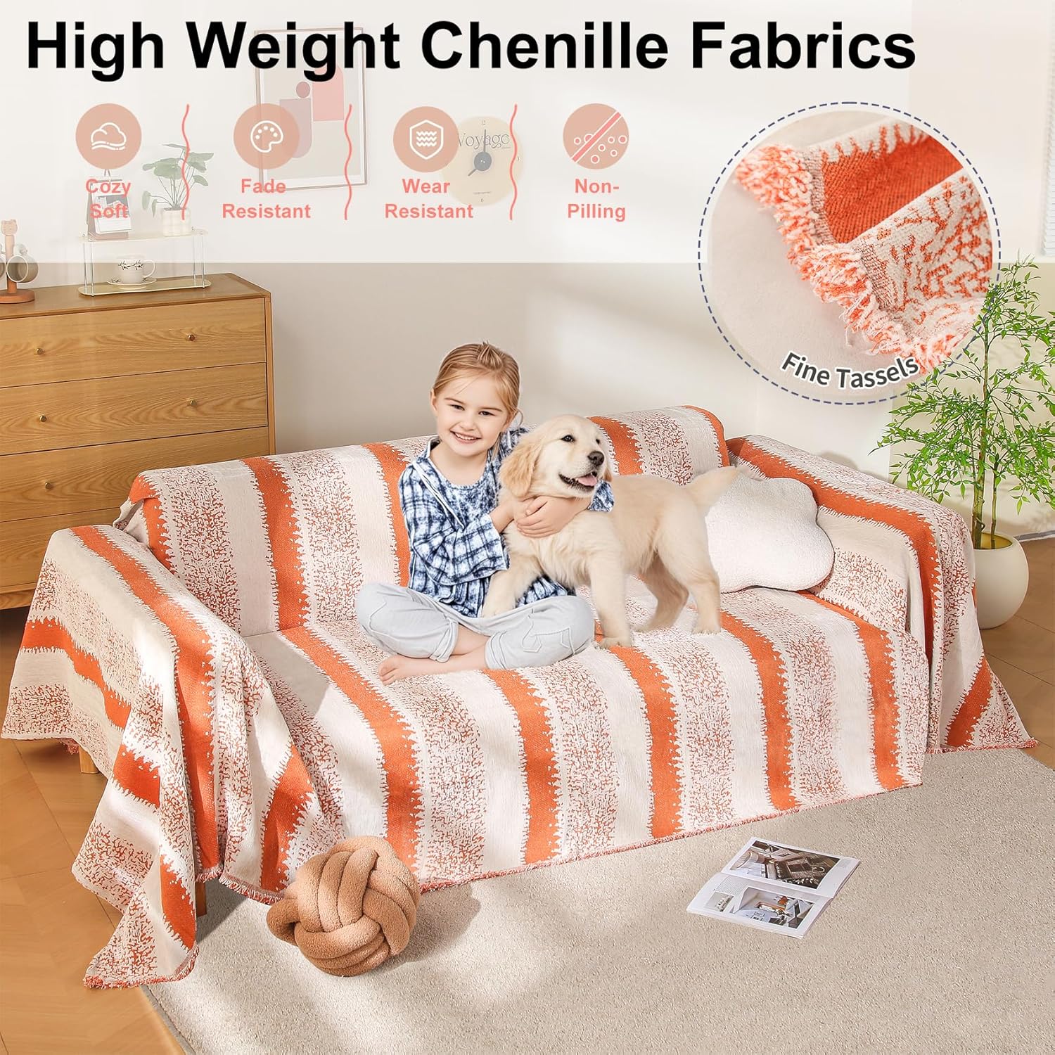 Boho Couch Cover, Sofa Cover, Sofa Covers for 2 Cushion Couch, Washable Sectional Couch Covers for Dogs Pet Furniture Protector Couch Cover Blanket for Living Room (1# Orange, 71" x 118")