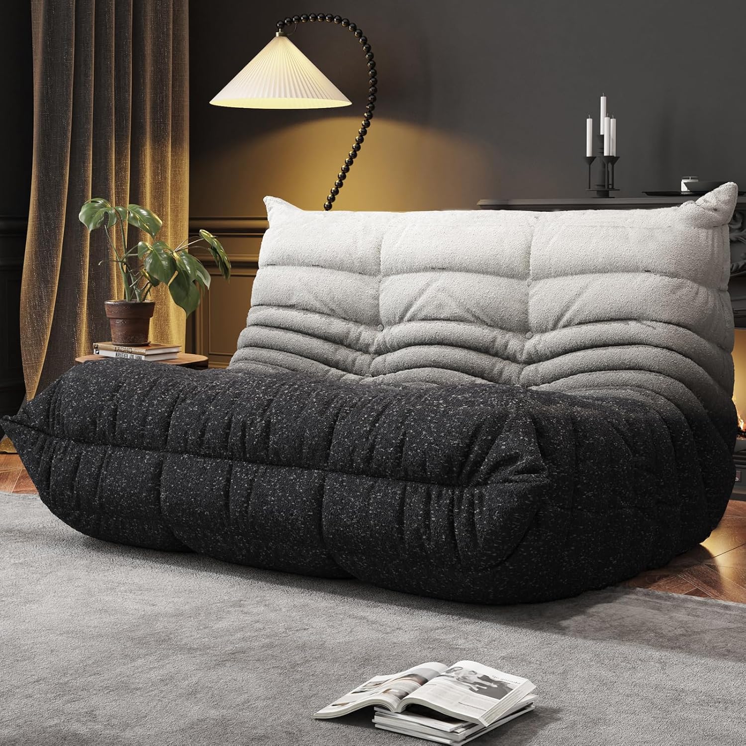 Bean Bag Chairs for Adults, Memory Foam Couch Loveseat Sofa Chair, Soft Teddy Material Cozy Comfy Reading Nook Chairs, Floor Chair for Living Room Bedroom Office(Black-White)