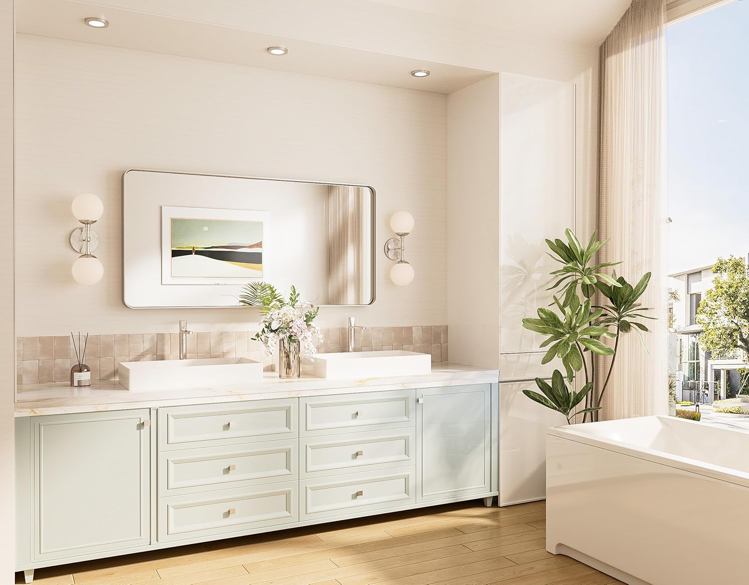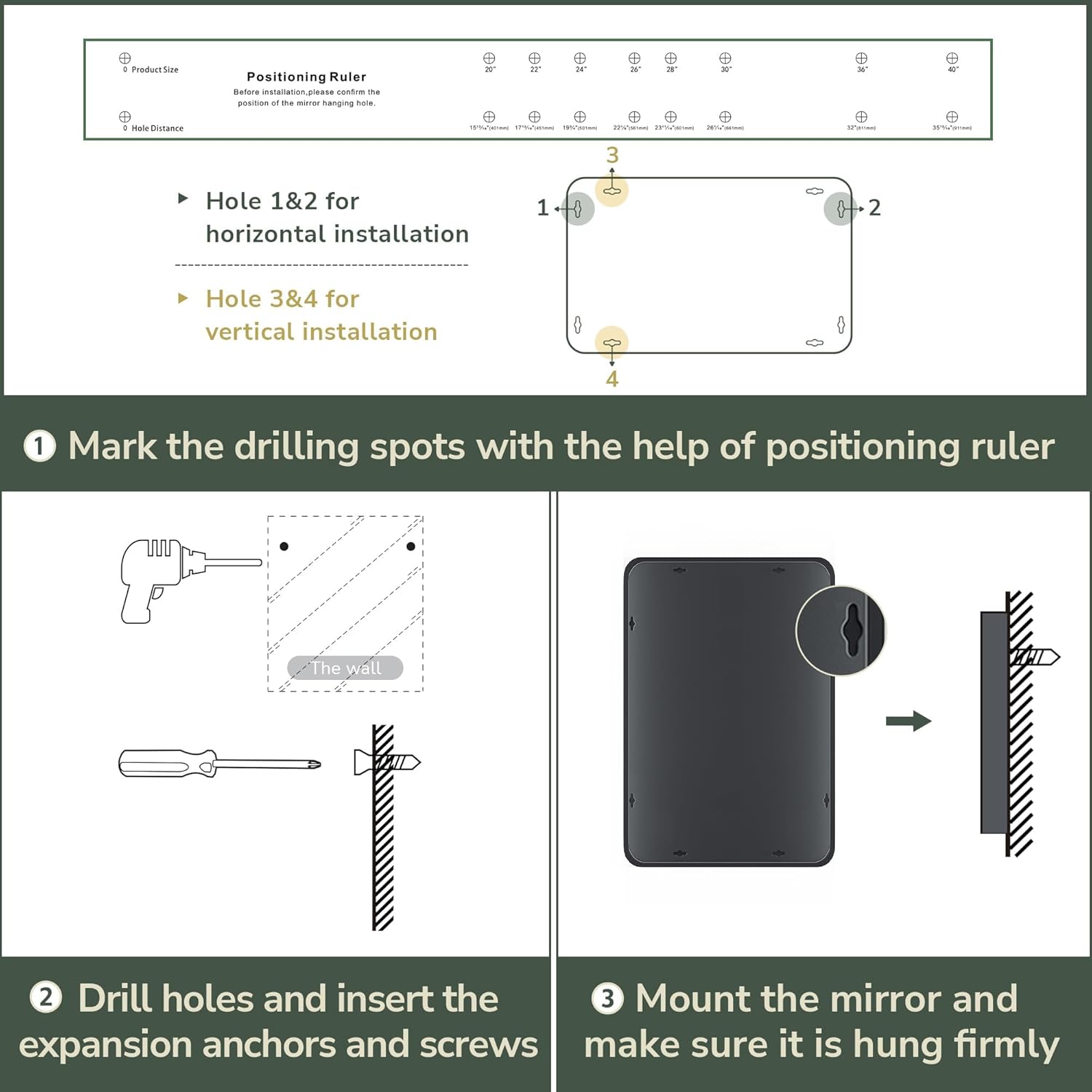 - MATTE BLACK ALUMINUM ALLOY FRAME: The non-deformed and rust-proof aluminum alloy makes the frame more durable. With a special oxidation technique, the metal frame is beautifully coated in matt black with a fine brushed texture, which gives the mirror a premium look.