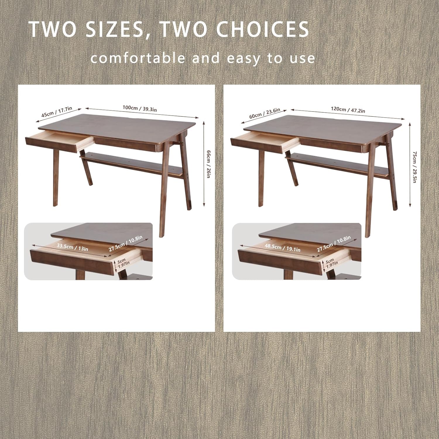 - COMFORTABLE WORKSPACE: With a surface size of 47.24" x 23.6" x 29.5", this natural wood desk with drawers allows you to write comfortably, and the surface can easily accommodate your keyboard and monitor. The desk has rounded corners to prevent bumps and enhance safety. And the 29.53-inch height is ergonomically designed to promote good posture and reduce physical stress.