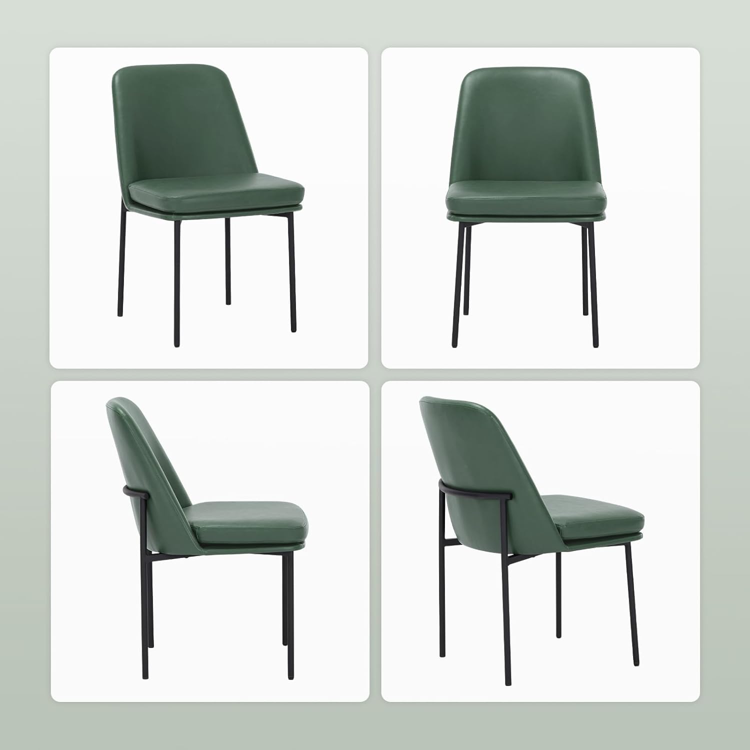 COLAMY Modern Dining Chairs Set of 2, Faux Leather Upholstered Dining Room Chairs Kitchen Chairs Dinner Chair with Curved Back and Metal Legs, Green