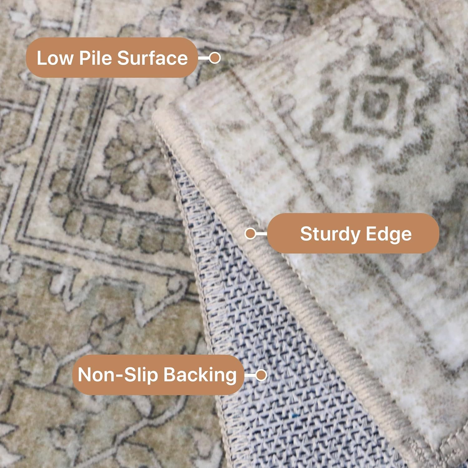 - Non-Slip Backing: Our washable rugs have a high-quality non-slip backing that secures floors from scratches and keeps the rug securely in place, avoiding any shifting or slipping. It serves as a comfortable, reliable and stable cushioning for frequently used areas such as the living room, dining room, kitchen, and hallways. Prolonged placement will not discolor your flooring.