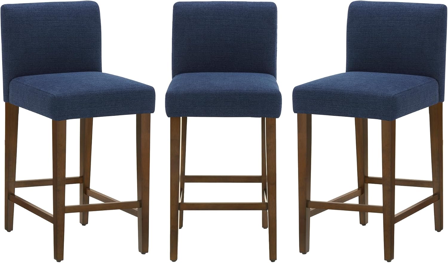 CHITA Counter Height Bar Stools Set of 3, 27" H Seat Height Upholstered Barstools, Fabric in Midnight Blue