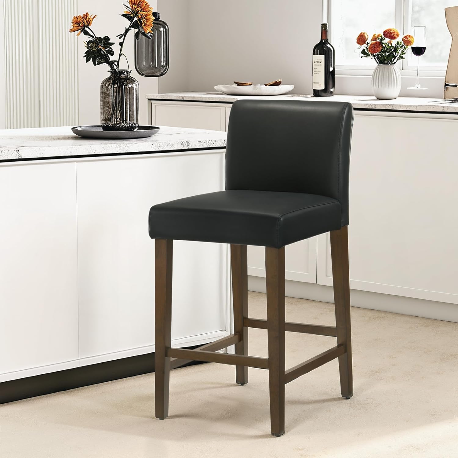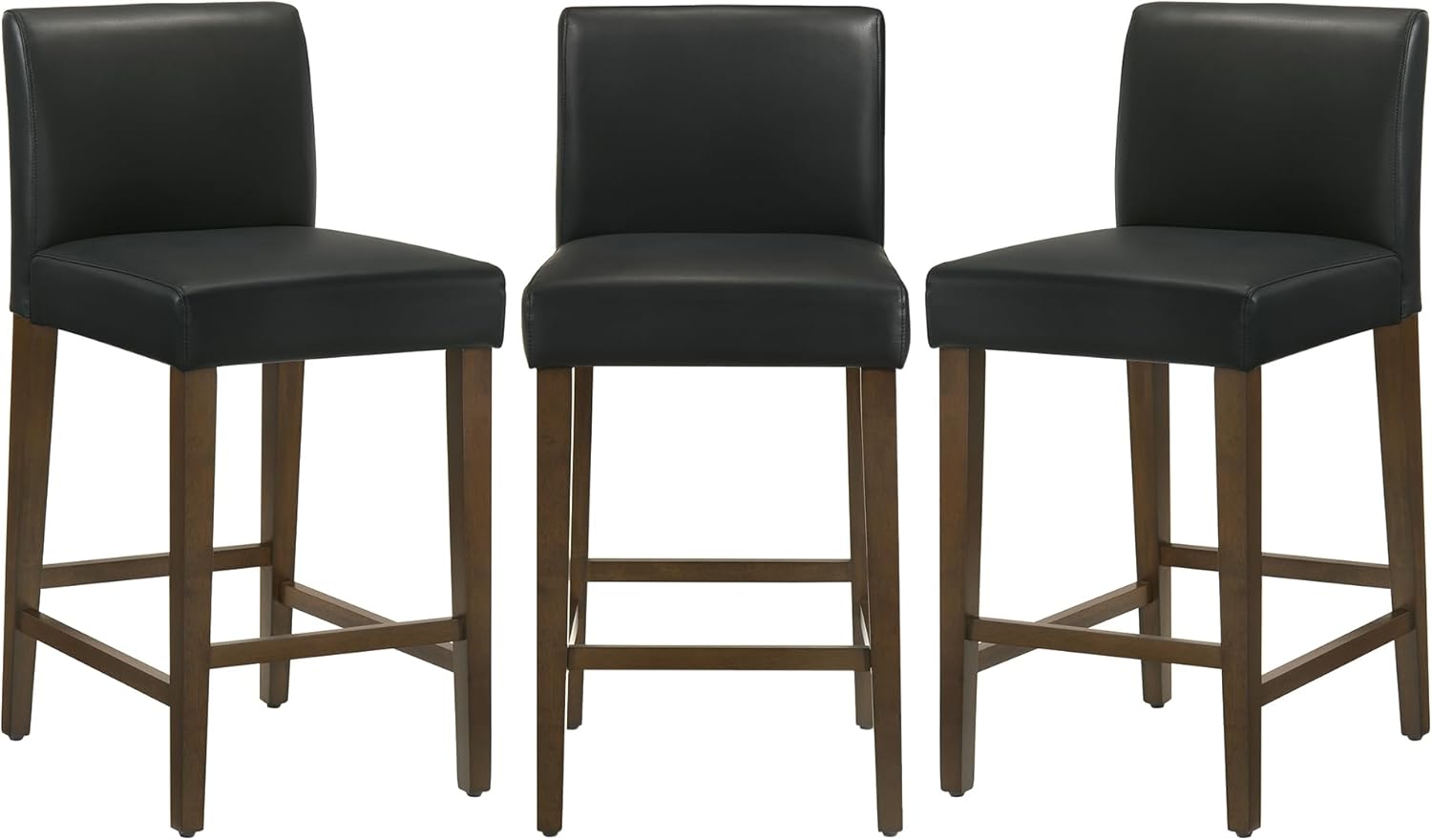 CHITA Counter Height Bar Stools Set of 3, 27" H Seat Height Upholstered Barstools, PU Leather in Black