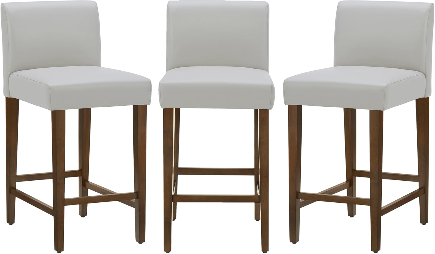 CHITA Counter Height Bar Stools Set of 3, 27" H Seat Height Upholstered Barstools, PU Leather in Creamy Grey