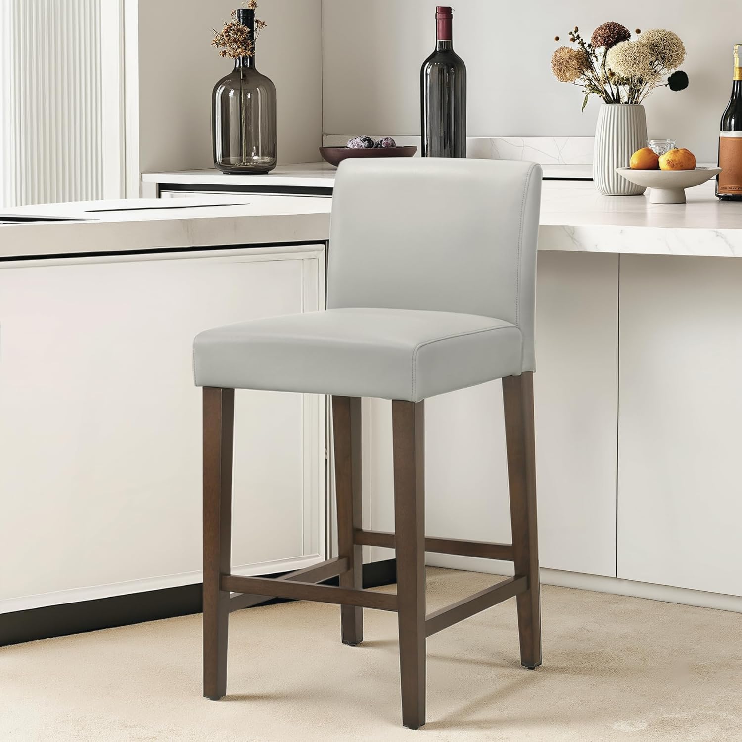 CHITA Counter Height Bar Stools Set of 2, 27" H Seat Height Upholstered Barstools, PU Leather in Creamy Grey