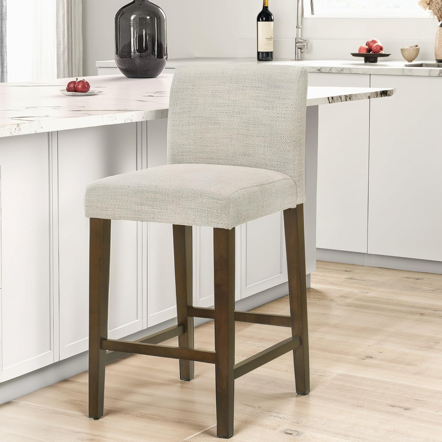 CHITA Counter Height Bar Stools Set of 2, 27" H Seat Height Upholstered Barstools, Fabric in Ivory