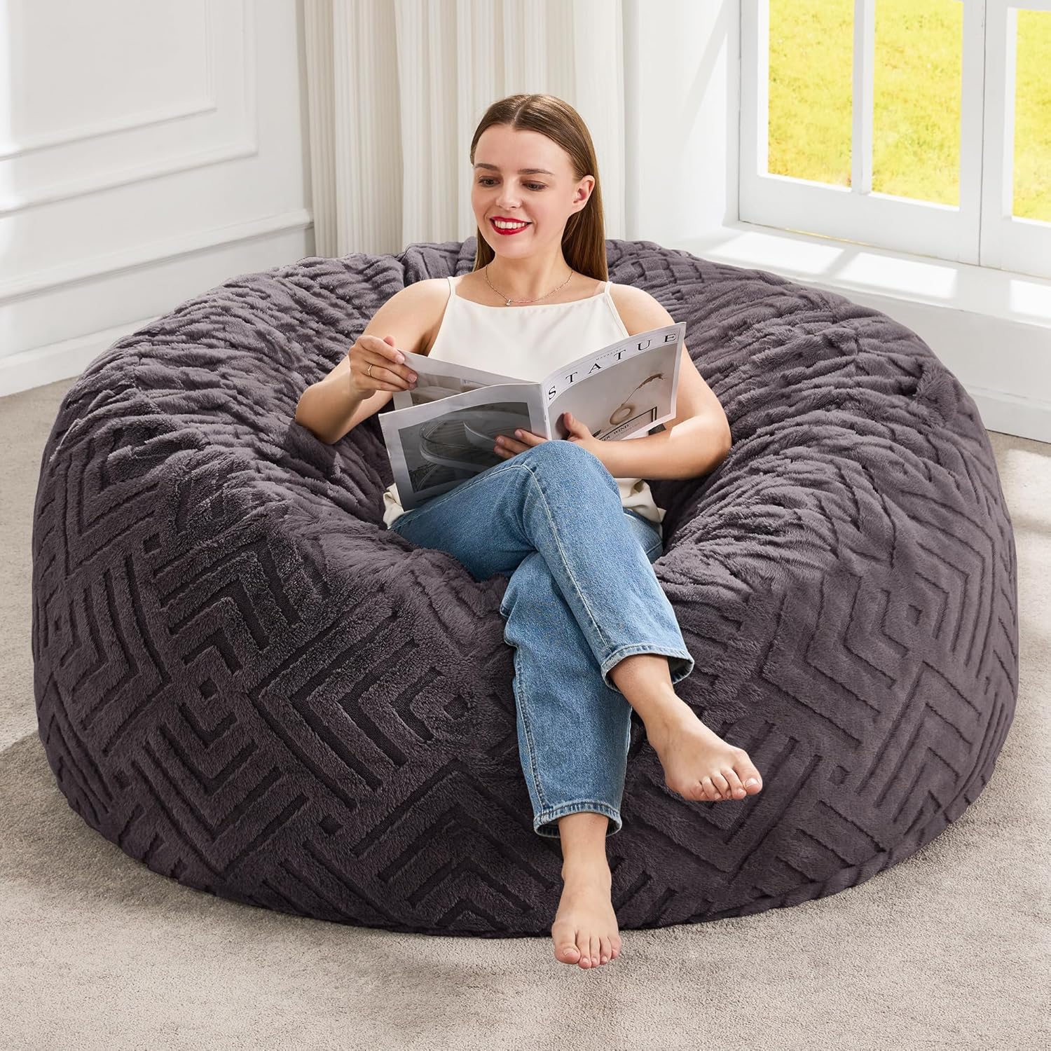 Hobestluk Bean Bag Chairs Adults Beanbag Chair with Filler Large Bean Bags with Fluffy Embossed Cover, Giant Bean Bag Chairs for Adults (Dark Grey, 4FT - 44” x 44” x 24”)