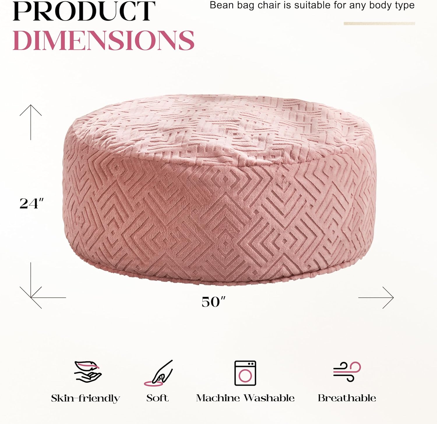 Hobestluk Bean Bag Chairs Adults Beanbag Chair with Filler Large Bean Bags with Fluffy Embossed Cover, Giant Bean Bag Chairs for Adults (Pink, 5FT - 50” x 50” x 24”)