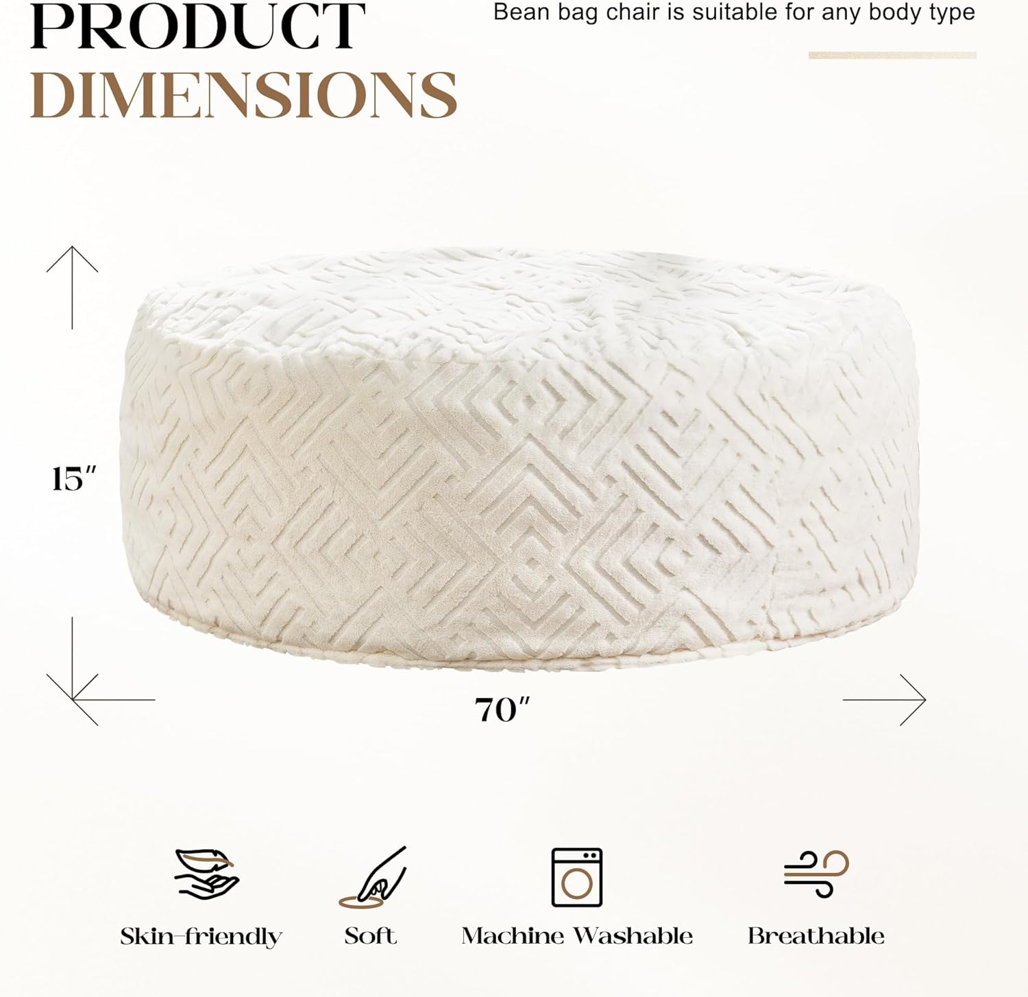 Hobestluk Bean Bag Chairs Adults Beanbag Chair with Filler Large Bean Bags with Fluffy Embossed Cover, Giant Bean Bag Chairs for Adults (White, 6FT - 70" x 70" x 15")