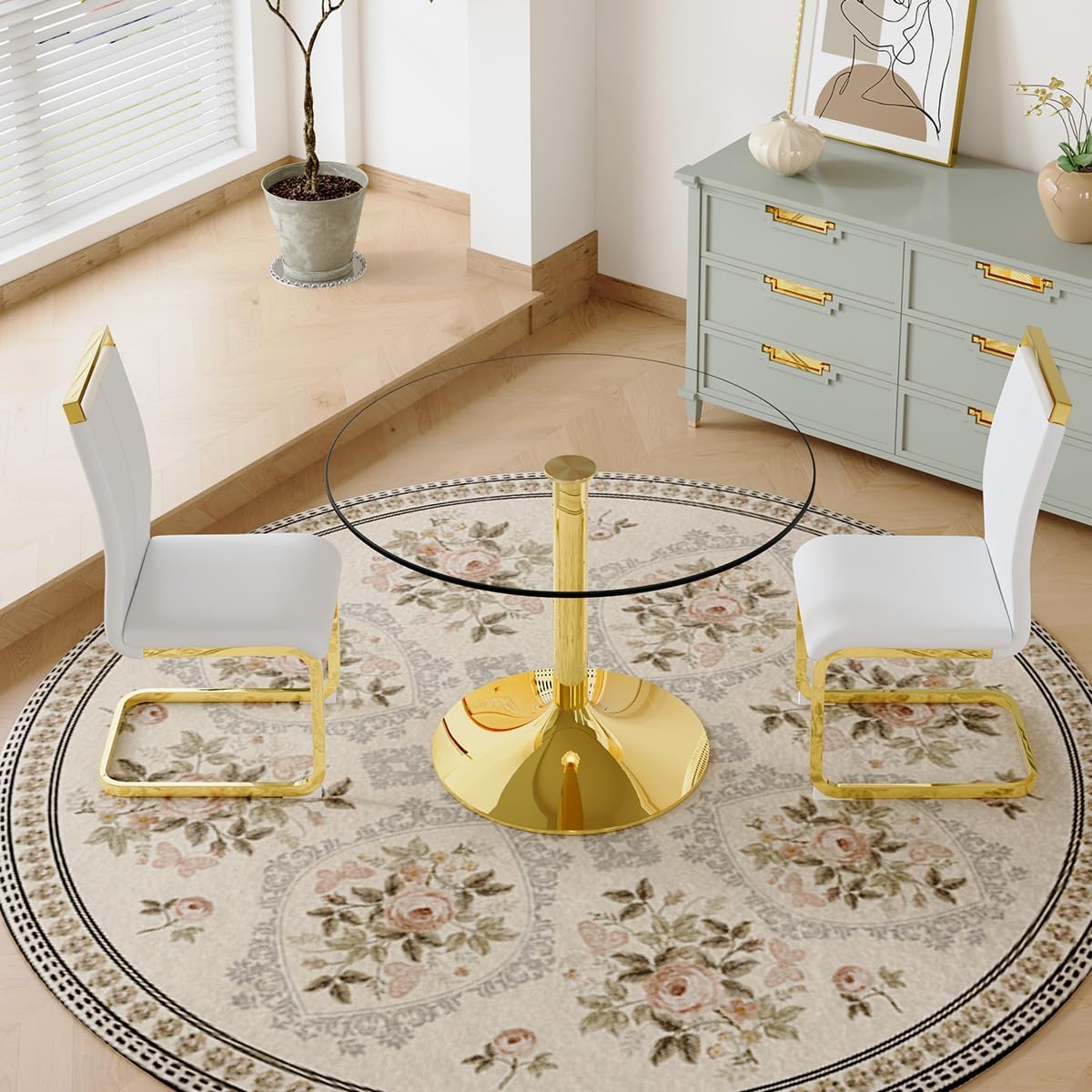 - 【Sturdy and Reliable Construction】Crafted with premium waterproof leather and sturdy 1.2mm plated chrome metal frame, the leather dining chairs ensure long-lasting durability and support. With a weight capacity of 300 pounds, this dining chairs set of 2 gold offers both functionality and a luxurious touch to your dining space, perfect for daily use.