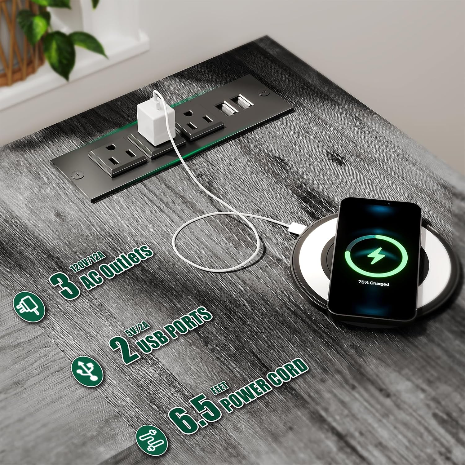 - L Shaped Desk with Power Outlet: Our 59 inch l shape desk equipped with 3 power outlets and 2 USB charging ports for your electronic devices, the home office desk makes it easy and convenient to charge your laptop, smartphone, gaming device or bluetooth device.