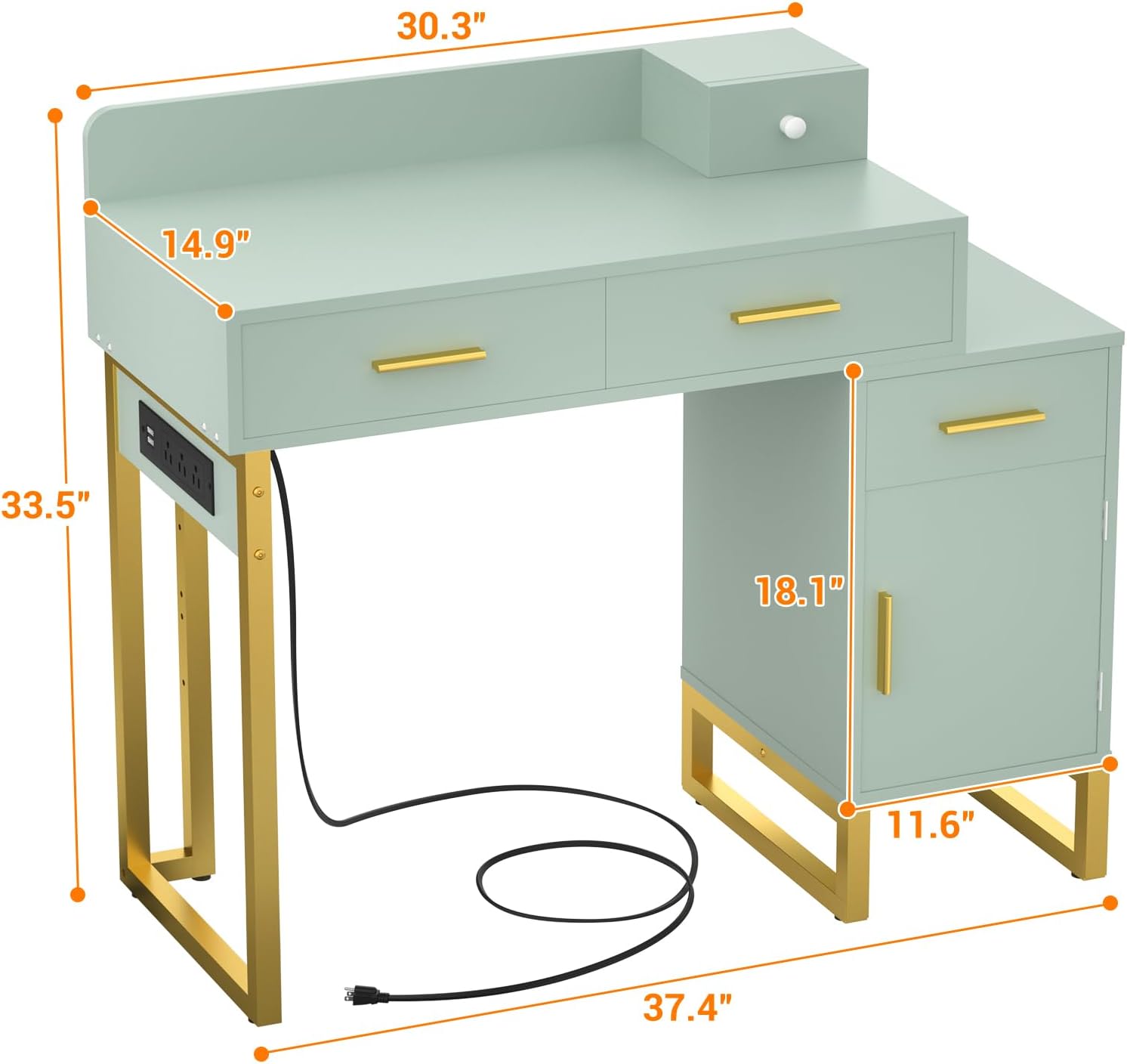 - Vanity Desk with Charging Station: Come with updated design charging station with 3 AC outlets and 2 USB ports, you can easily use curling iron or hair dryer in front of the mirror, and charge your phone or other mobile devices during makeup.