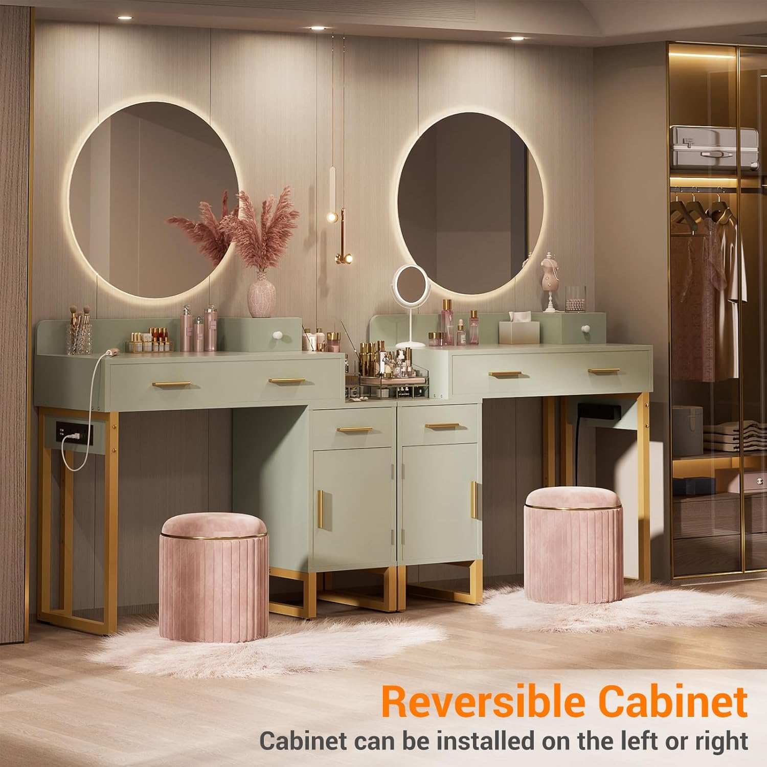 - Reversible Vanity Table with Sturdy Structure: Dressing table is composed of a high-quality heavy wooden board and sturdy durable frame to provide stability, long-lasting use and beauty. The cabinet can be installed left and right to meet the needs of different house types. Solid metal handles have been smoothed, will not scratch, oxidize, deform, or fade.