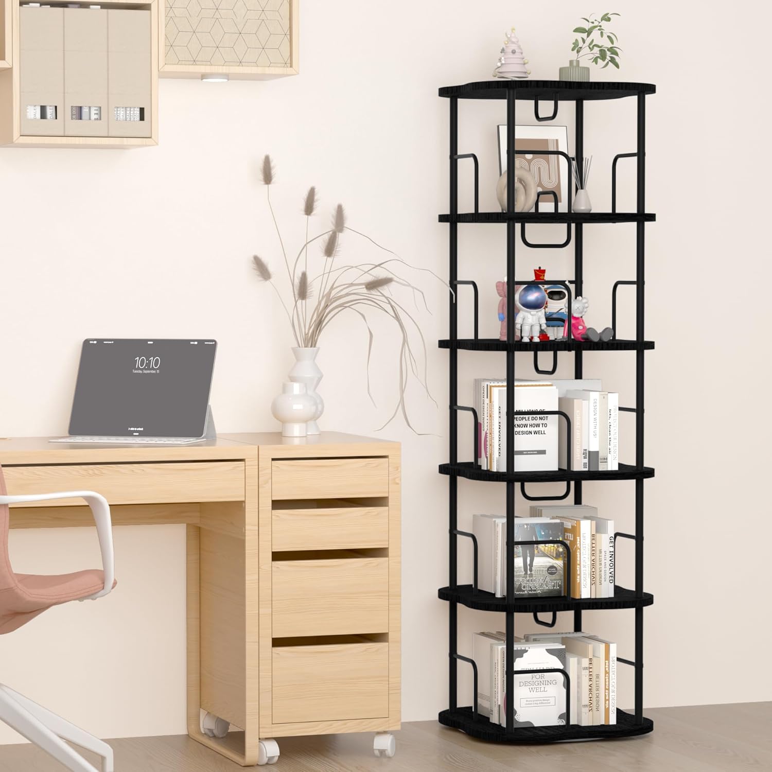 5-Tier Rotating Book Shelf, 360° Display Spinning Bookshelf Tower, Book Organizer, Floor Standing Bookcases for Small Space, Corner Book Shelf for Bedroom, Living Room, Study Room (Black)