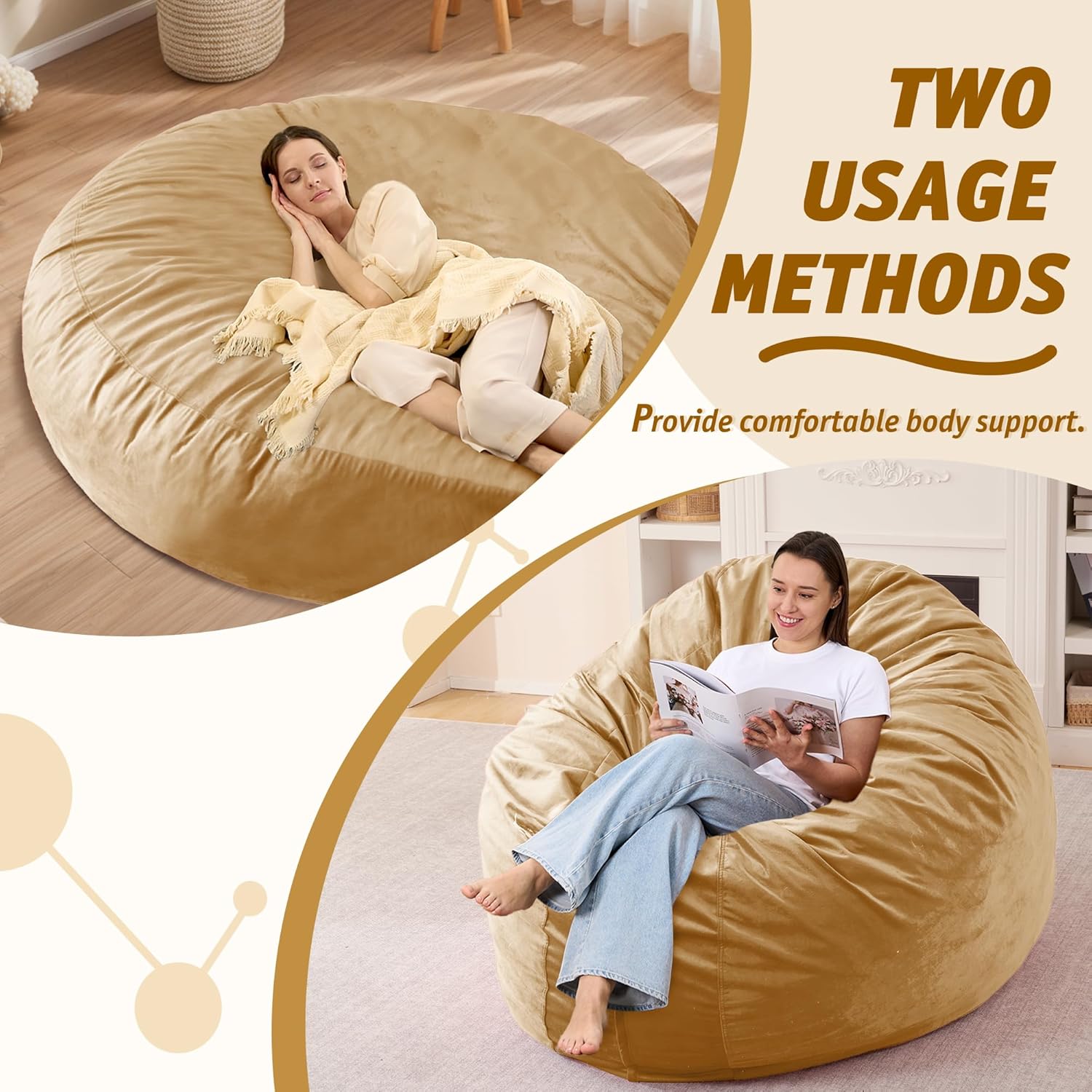 7FT Bean Bag Chair with Ultra Soft Velvet Cover Bean Bag Sofa with Memory Foam Bean Bag Chairs with Large Size Lazy Sofa for Dorm Office Living Room Bedroom Camel 7'