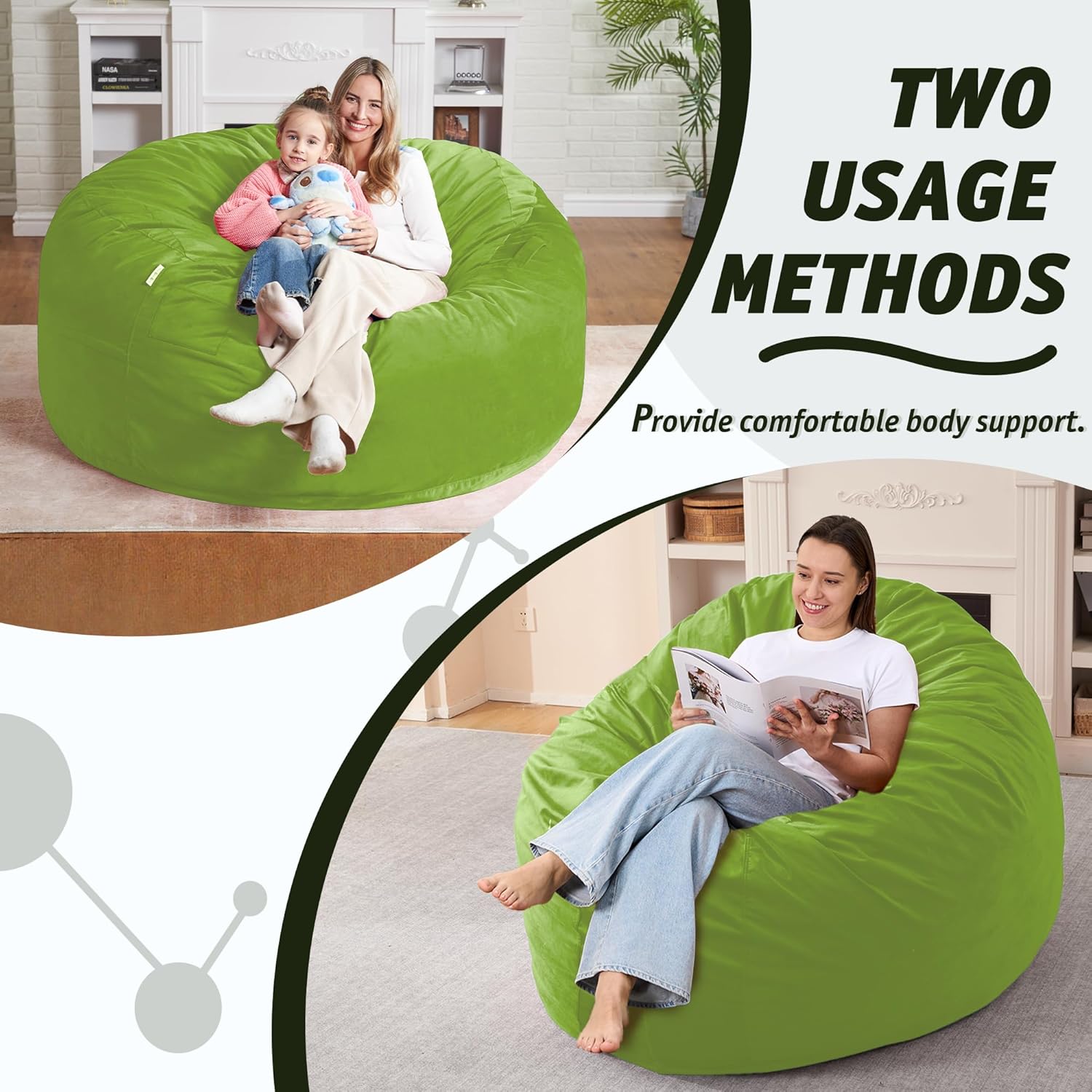 5FT Bean Bag Chair with Ultra Soft Velvet Cover Bean Bag Sofa with Memory Foam Bean Bag Chairs with Large Size Lazy Sofa for Dorm Office Living Room Bedroom Grass Green 5'