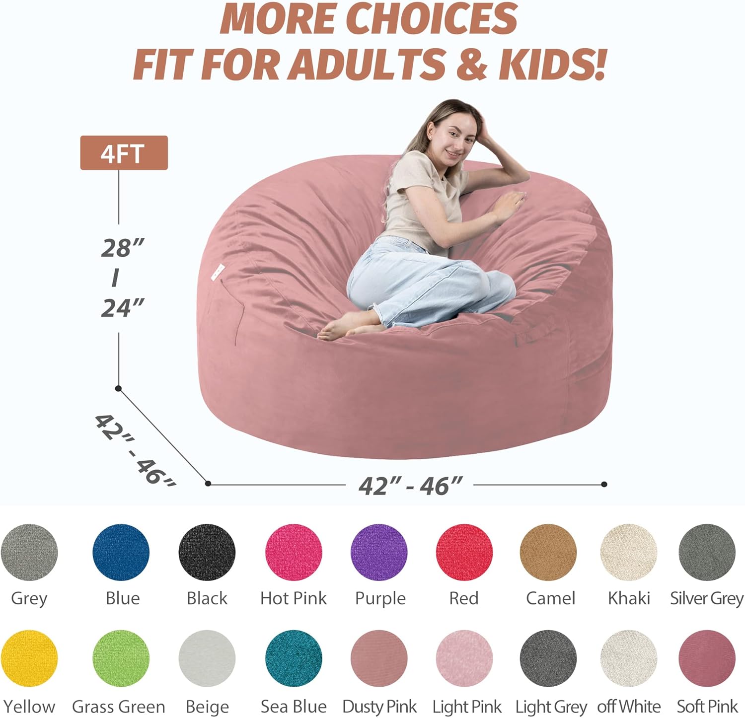 - 🎀【Fit for Whole Family & Multifunctional】3ft beanbag is suitable for youth, 4ft beanbag chair is suitable for women and children, 5ft bean bag is suitable for a family, different sizes and colors to meet your needs. The saucer chair can be used as a bed, a chair, or a lazy sofa, suitable for reading, playing, watching TV, sleeping... As well as bedrooms, living rooms, university dormitories, etc. In addition, it is a good gift for family and friends!