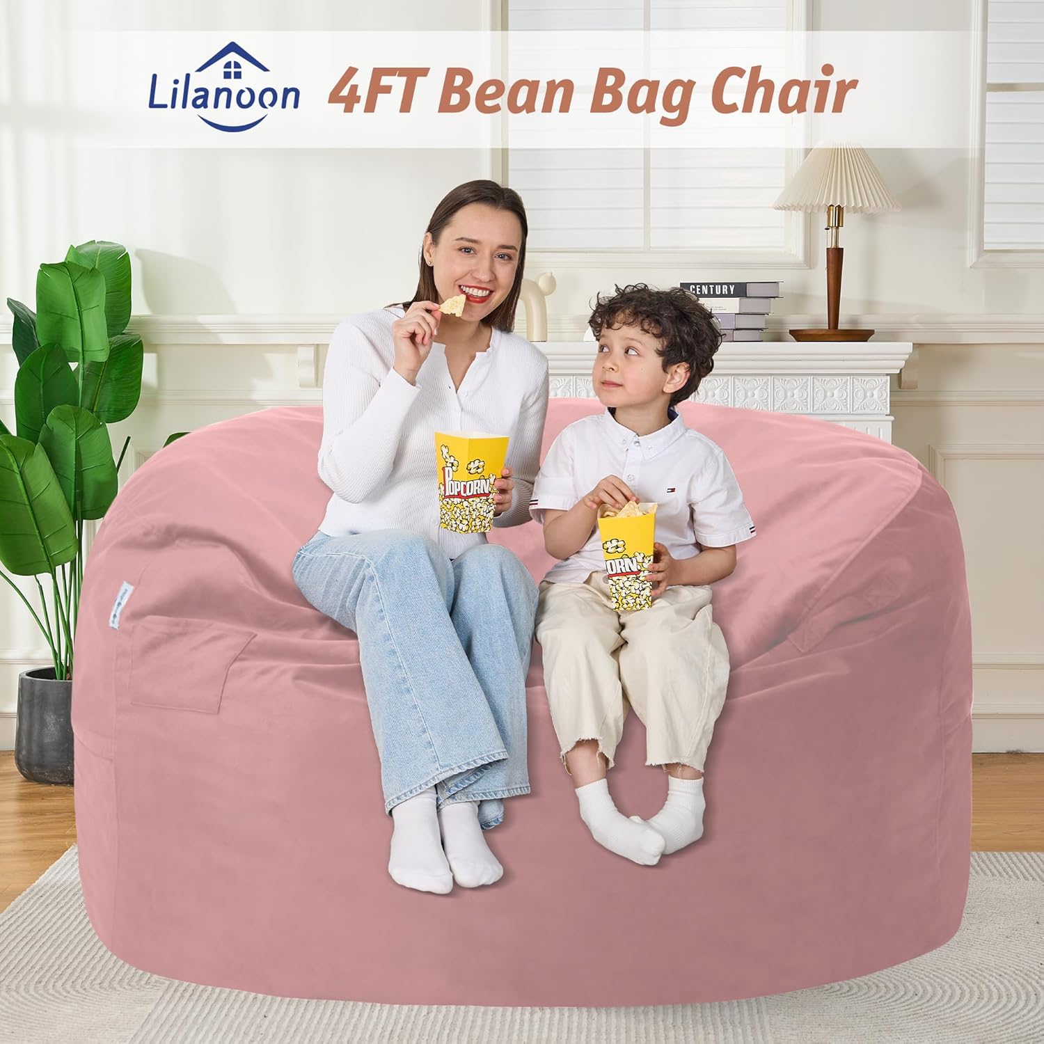 4FT Bean Bag Chair with Ultra Soft Velvet Cover Bean Bag Sofa with Memory Foam Bean Bag Chairs with Large Size Lazy Sofa for Dorm Office Living Room Bedroom Dusty Pink 4'