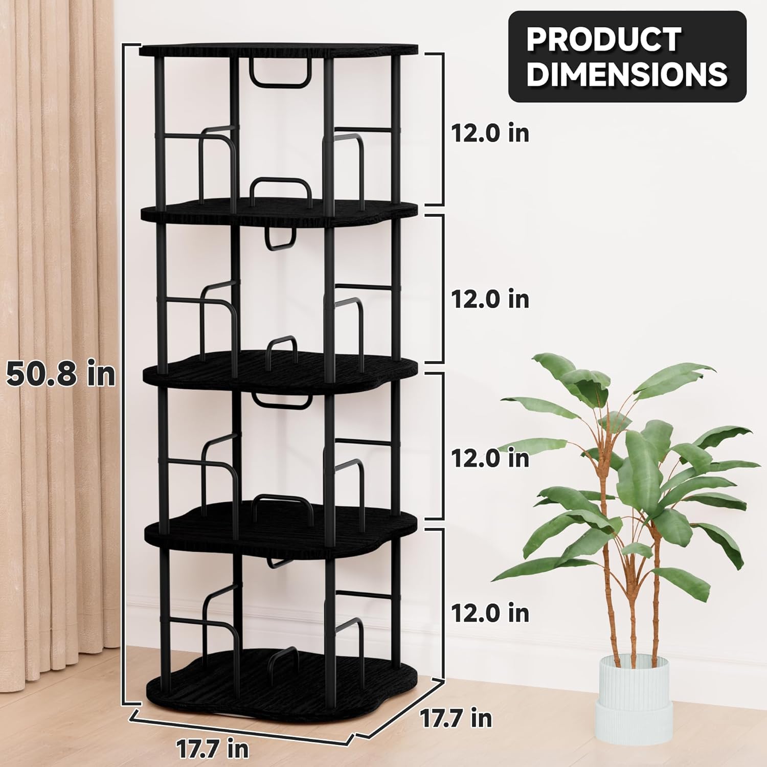 - 【Sturdy and Practical】Crafted from thick MDF wood and a high-quality metal steel frame, this tall shelf tower blends durability with style. The MDF wood has a smooth, scratch-resistant surface that’s also waterproof and easy to clean. The sturdy metal frame ensures stability, keeping your items secure even when the vintage bookshelf is rotated, preventing anything from falling.